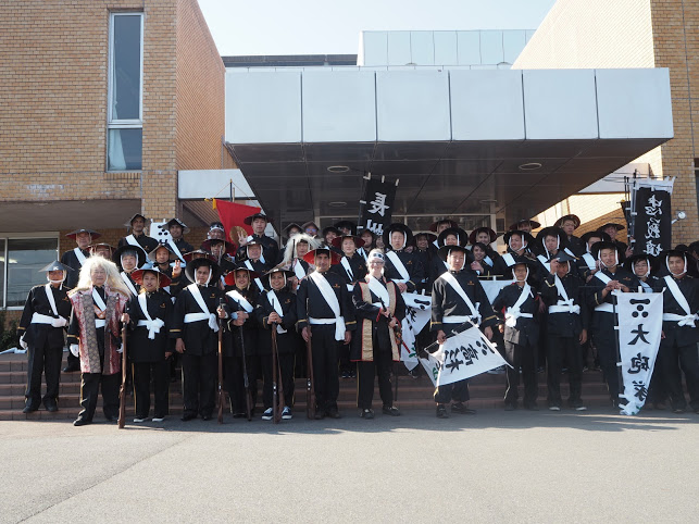 着替えが終わって、刀や鉄砲などの道具を持ったら出発式が行われる中央公園へ移動!色んな部隊の方とご対面!