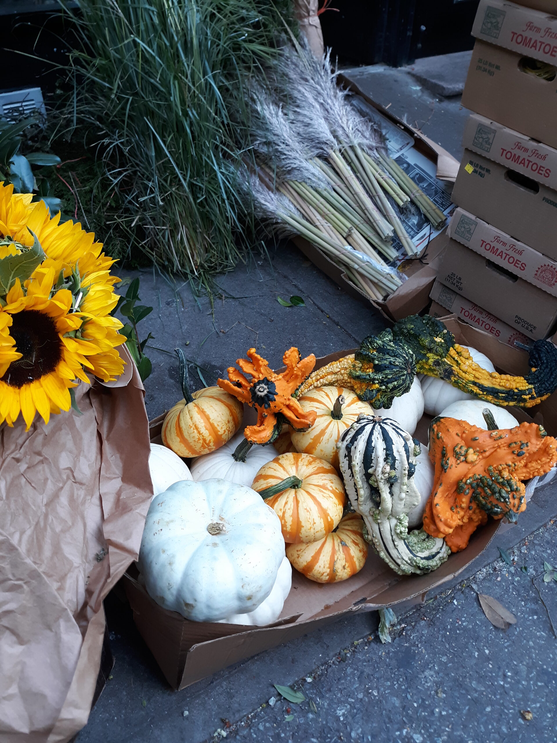 スーパーで販売される南瓜たち。主に装飾用のもの。(NY,アメリカ合衆国。)