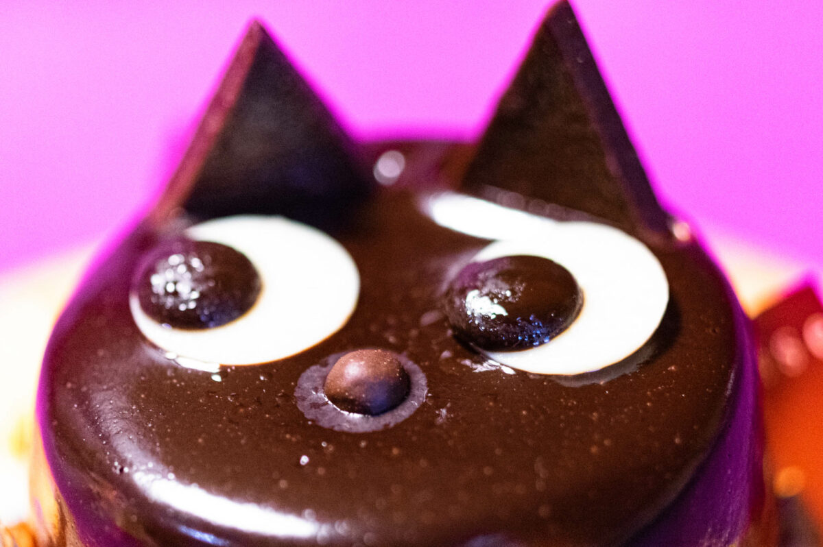 3品目は、黒ねこをモチーフにしたプチケーキ。表面はチョコレートで艶々にコーティングされています。
