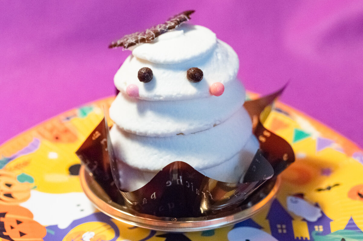 実食1品目は、パーティーにいたずらしに行くおばけをイメージしたというプチケーキ。