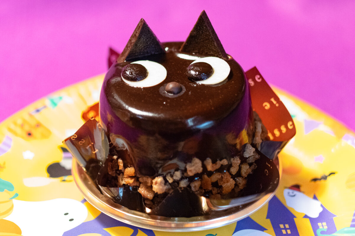 3品目は、黒ねこをモチーフにしたプチケーキ。表面はチョコレートで艶々にコーティングされています。