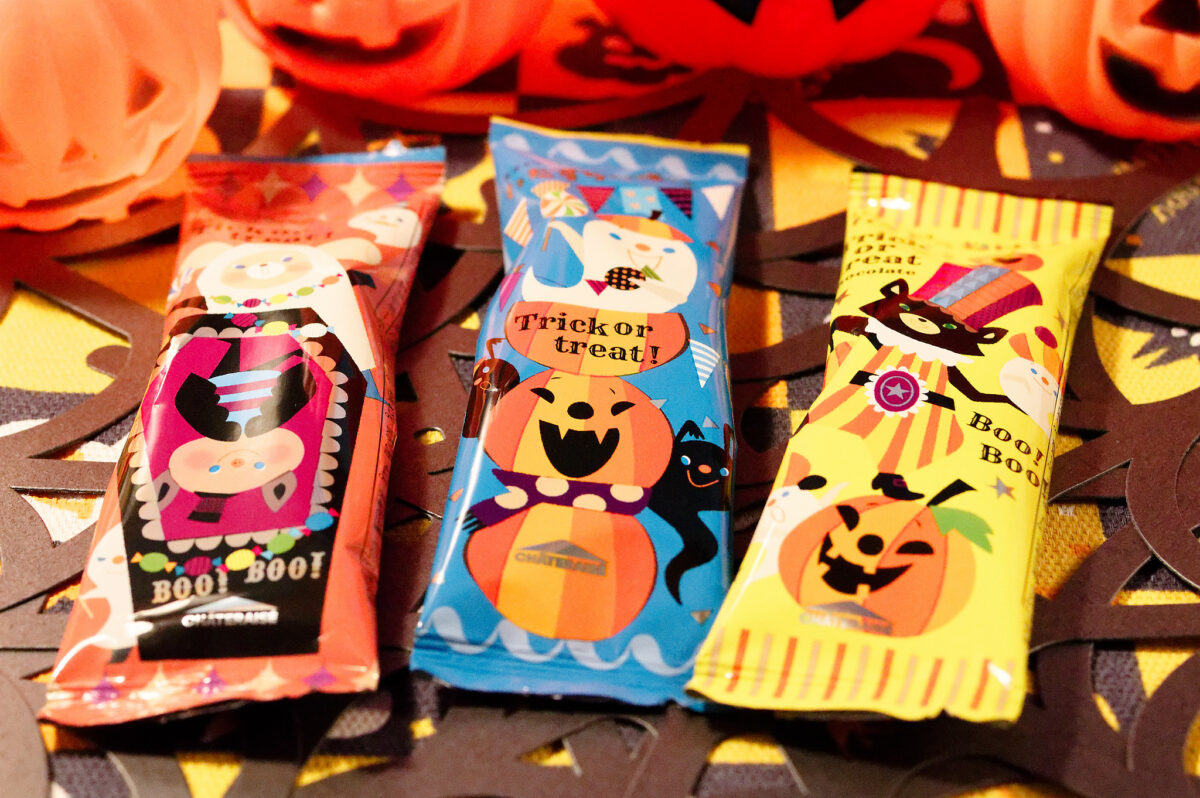 1枚毎に包装されているので、ハロウィン用のラッピング袋を購入して、パーティー用にお菓子の詰め合わせとして準備するのもいいですね。