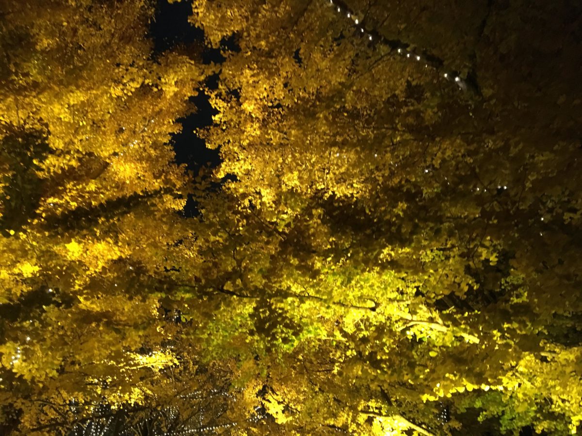花火の前には黄葉と紅葉、花火の後にはライトアップで長時間楽しめるお祭りになりました。