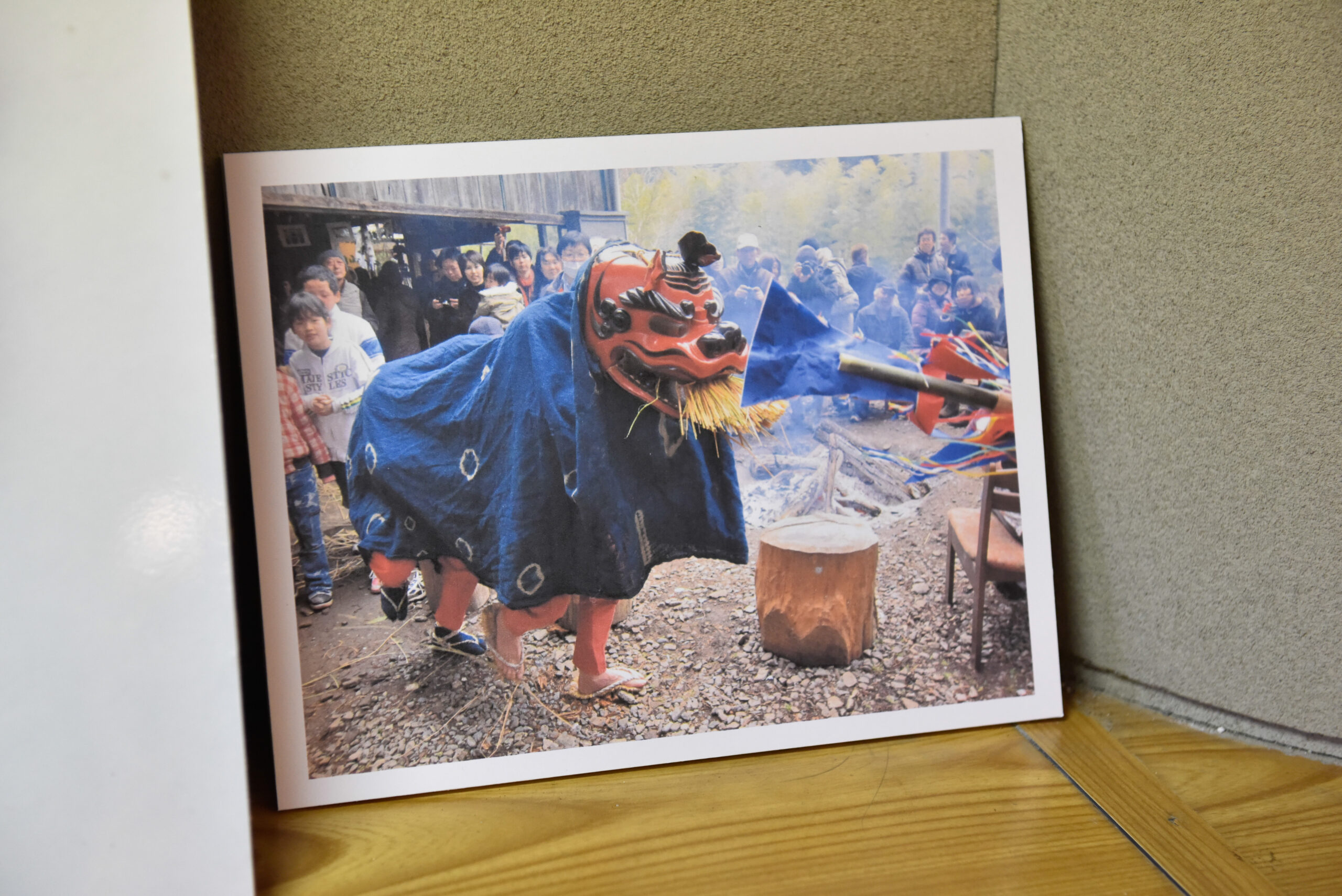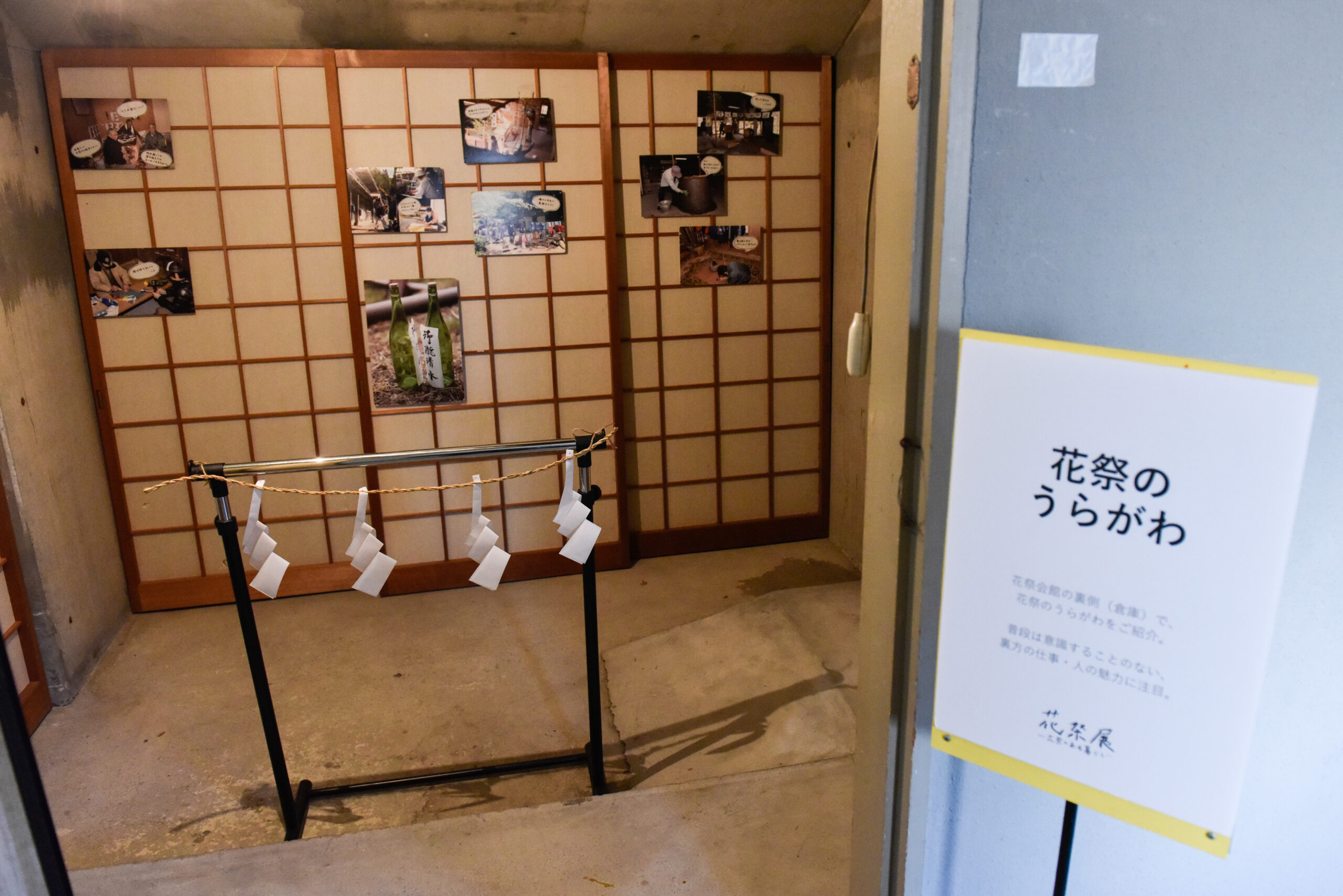 またこちらのコーナーでは、花祭の準備や後片付けなどの風景を写した写真を、花祭会館の倉庫と障子などをうまく活用しながら展示していた。どういう写真なのか、吹き出しでコメントもつけられていた。普段は地域内の人しか知ることのない風景を紹介しているのが、とても面白い視点だ。