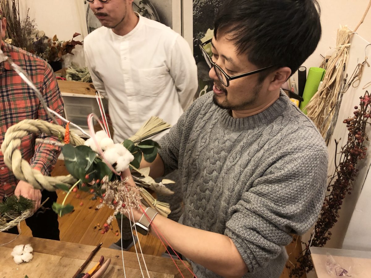材料さえ決めてしまえば、あとは流れや自分の気の向くままにくっ付けてしまえばあっという間にできあがります。迷ったときは先生から的確なアドバイスも貰えるし、何より自分だけのオリジナルしめ縄を作ることの楽しさはやってみないと分からないかもしれません。