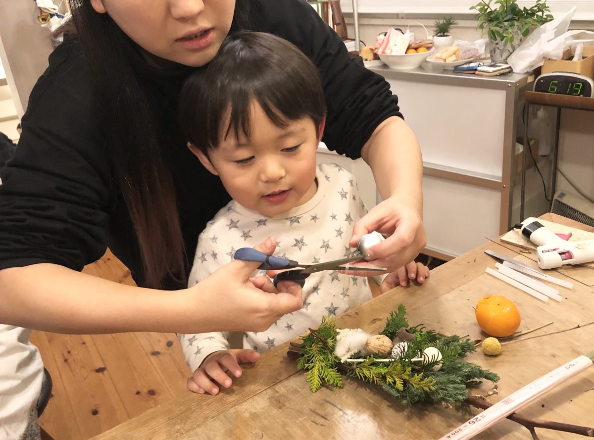 今回のワークショップには、我が子もいっしょに参加!クリスマスリースを作りました!親子連れにもおすすめです