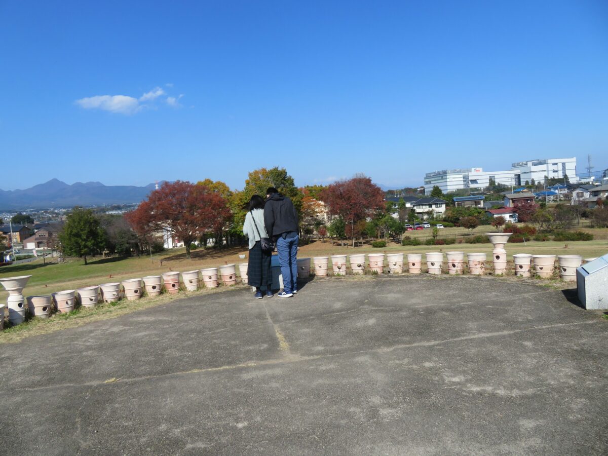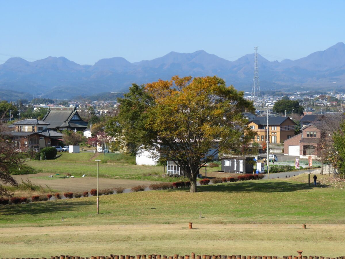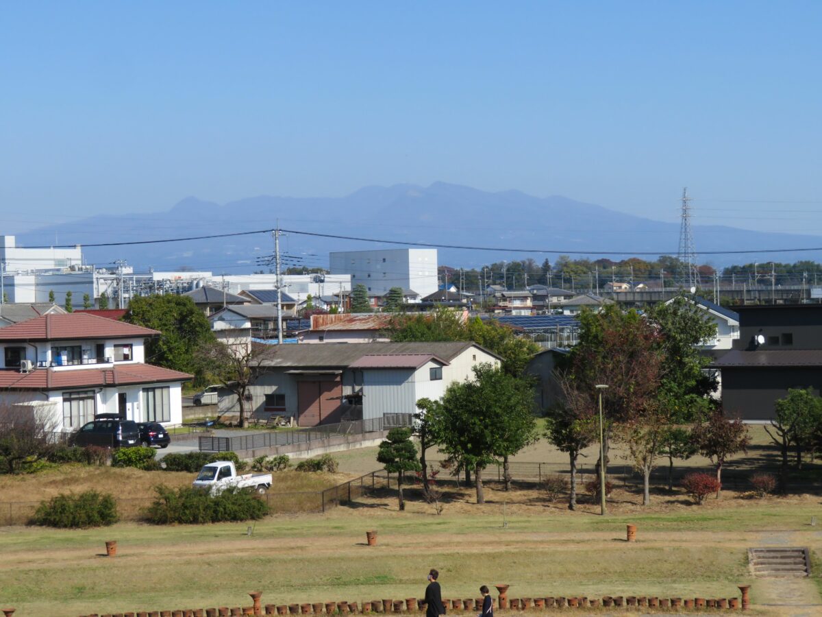 「八幡塚古墳」の墳丘も格好の展望エリアとなっており、北東には赤城山、北西には榛名山の姿をはっきりと見ることができます。