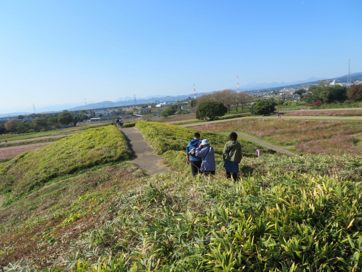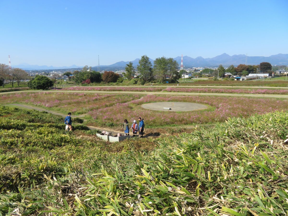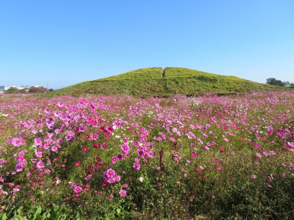 墳丘からは眼下に360度のパノラマでコスモス畑が広がります。