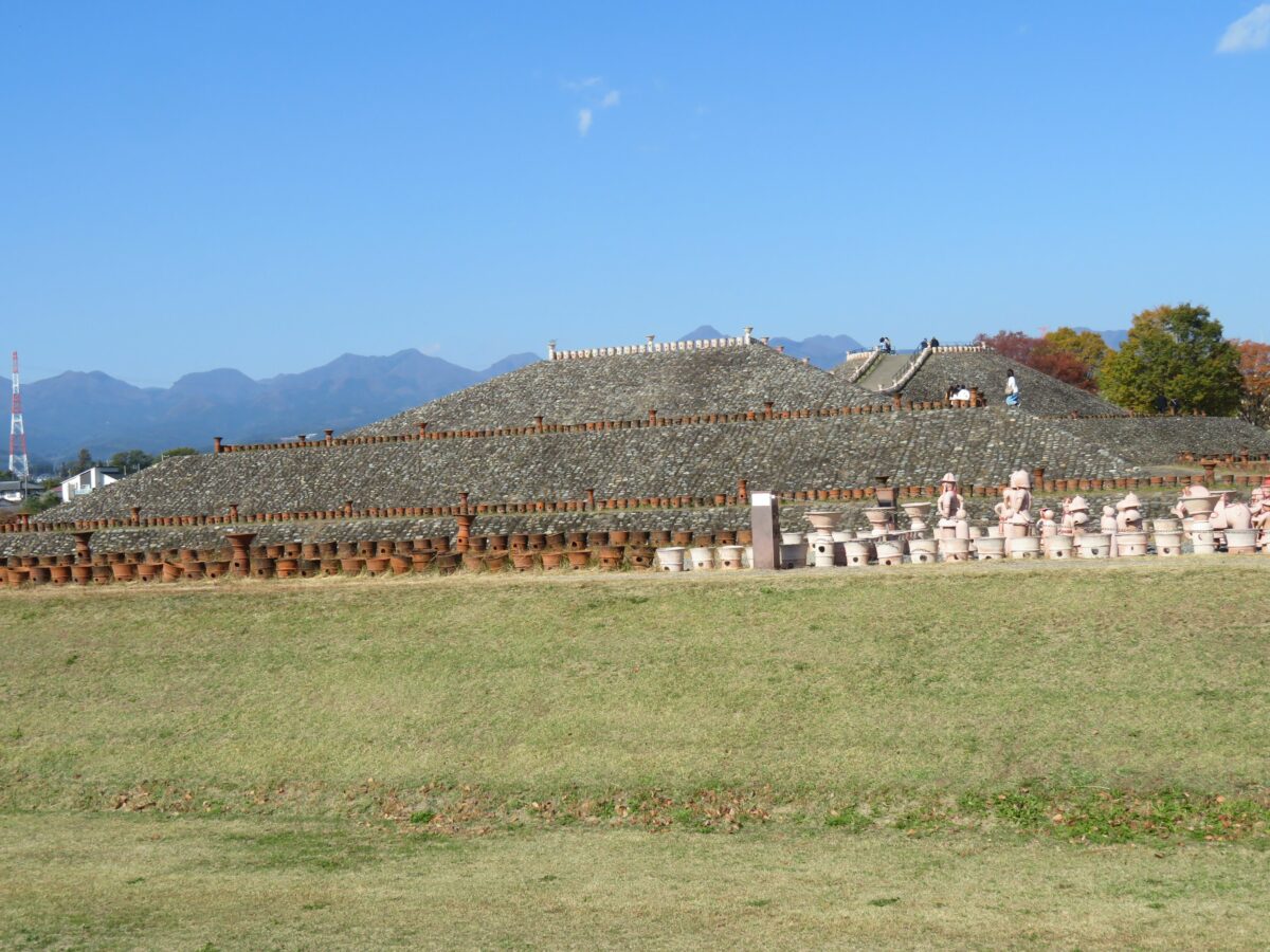 「二子山古墳」の東に建つ「かみつけの里博物館」では、榛名山東南麓で出土した5世紀後半の人物や動物の埴輪や、古墳時代の様子を再現した模型が展示されています。