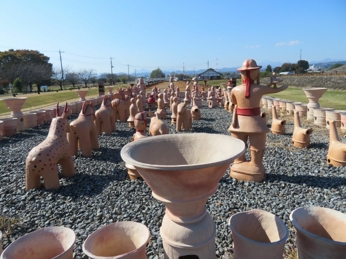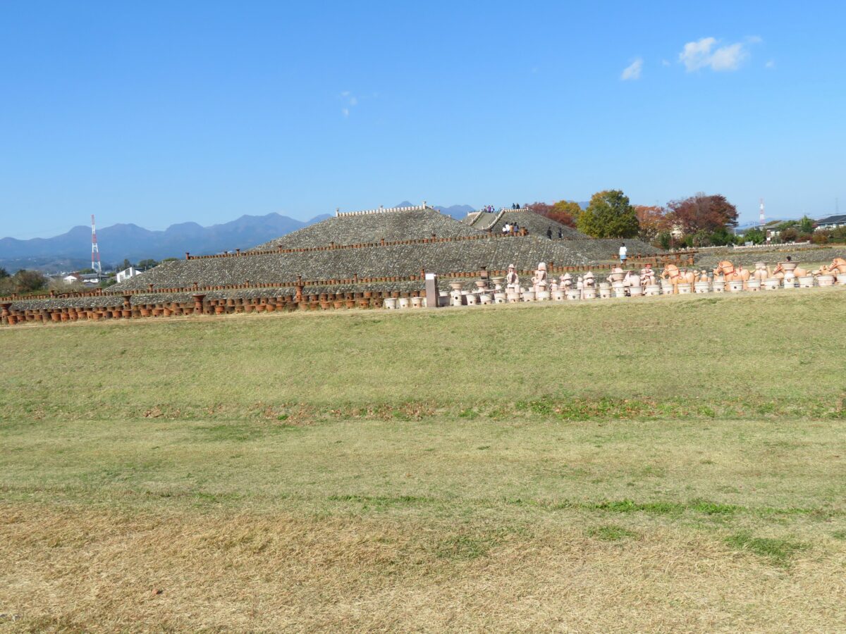 墳丘の前には埴輪が並べられ、古代の人々の生活が偲ばれます。