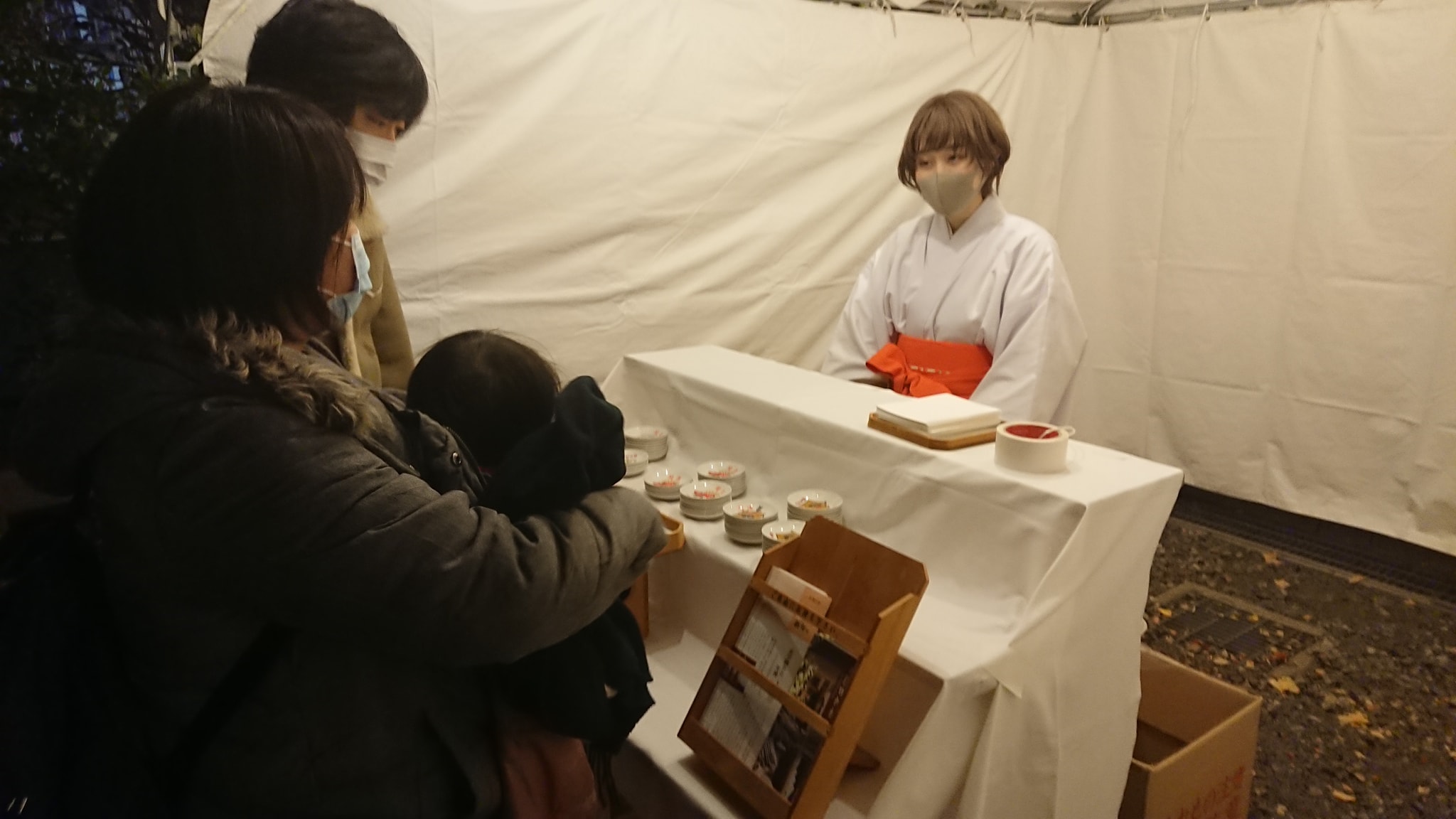 こちらの巫女さん達は有料グッズの担当。沢山の御利益があるグッズを売っていくのは中々大変そうです。