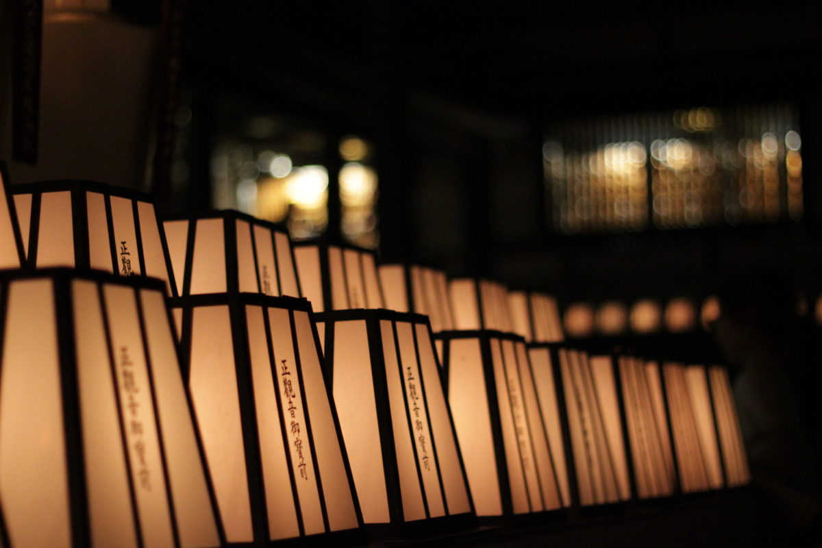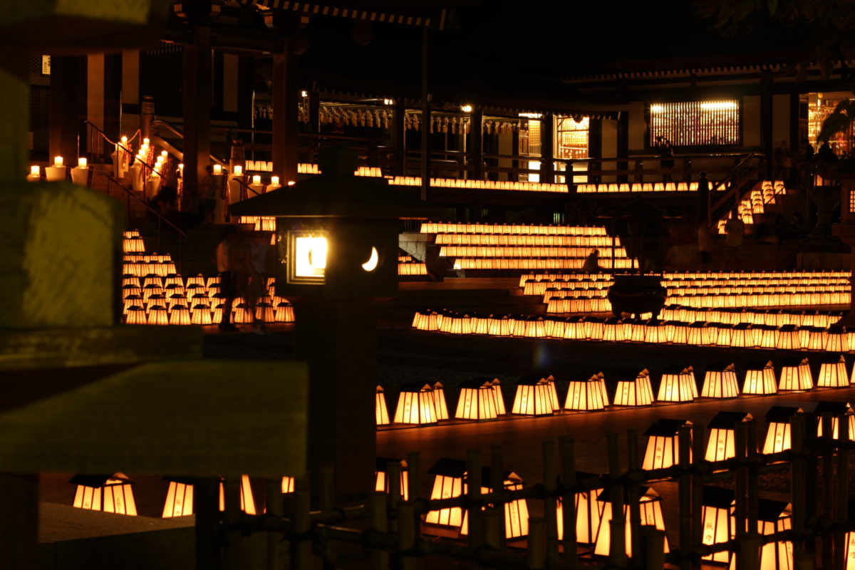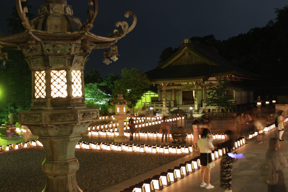 本堂周辺に灯された1,000を超える灯篭たちは圧巻の美しさです。