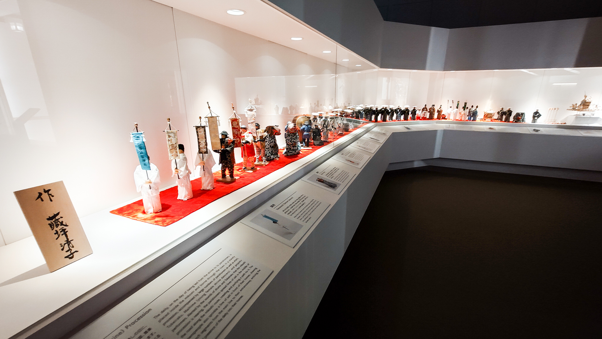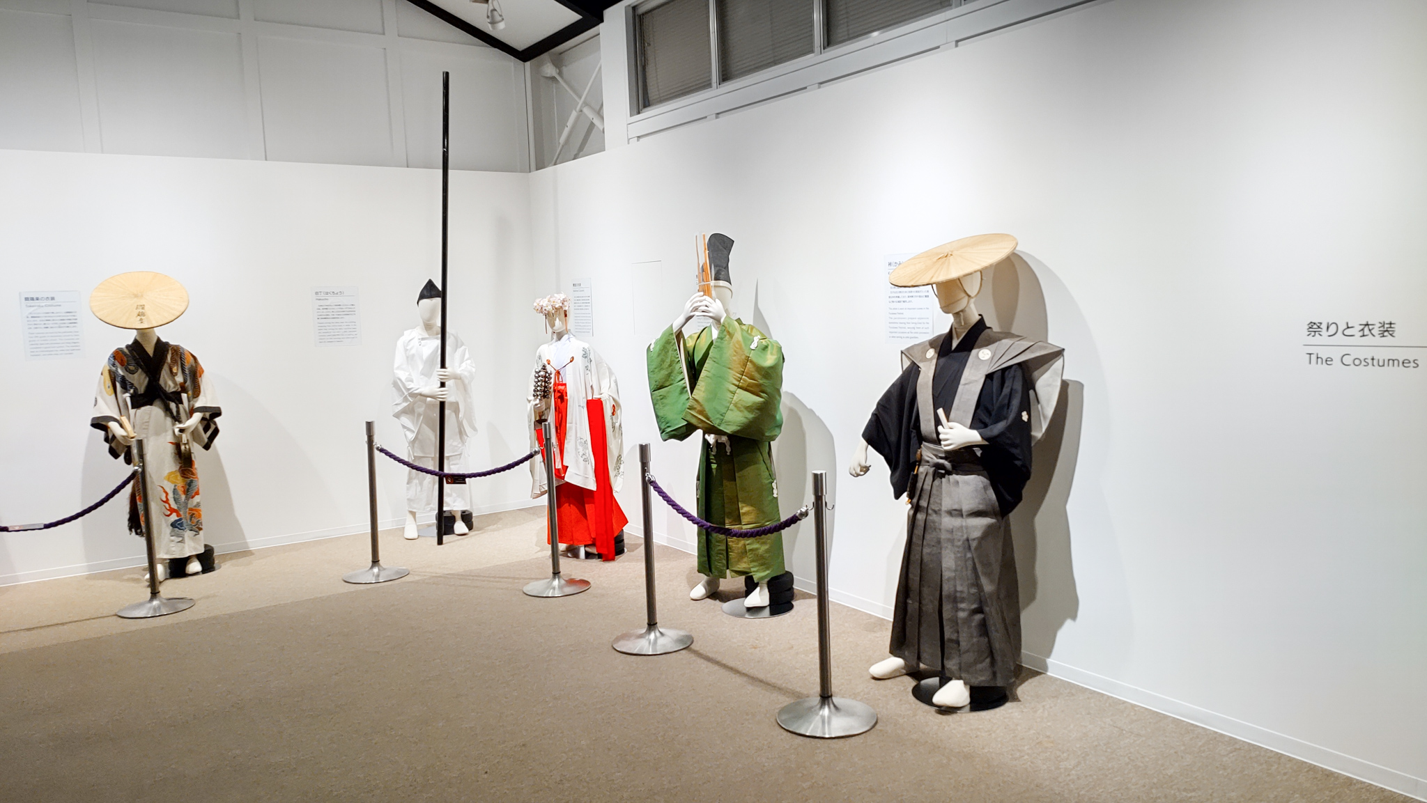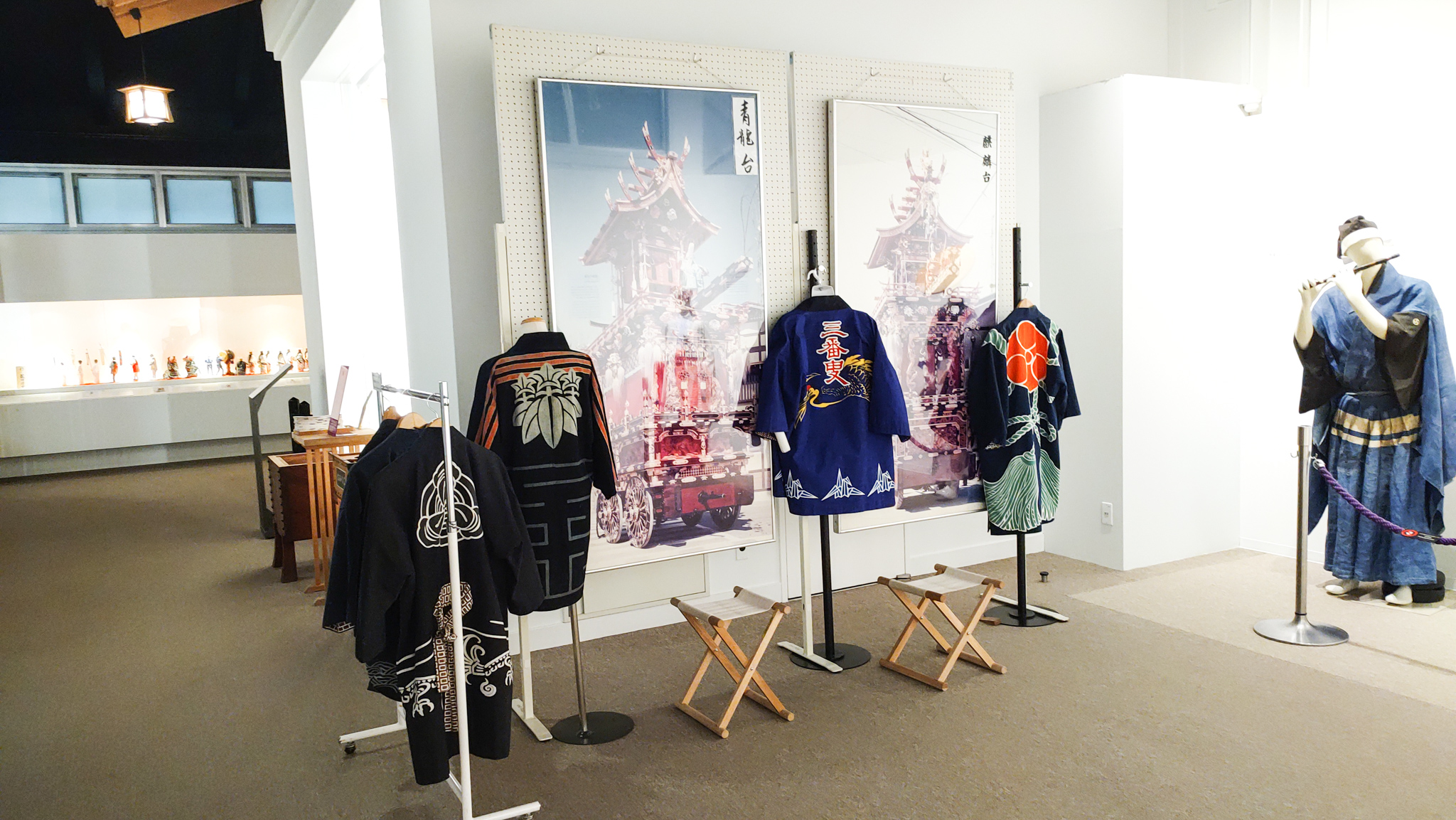 それから再び受付などがある上の階へと階段を上ると、人形による祭り当日の行列の再現がある。数百メートルにもなるこの行列の長さにびっくりだ。屋台や起こし太鼓だけでなく、獅子、闘鶏楽、舞姫、雅楽など様々な立場の人が行列に加わっていることを実感することができ、ここで祭りの全体像がくっきりと見えてくる。これほど盛大な祭りが開催されているというのは驚きだ。街の人々がどれほど古川祭に対して想いを込めているかが伝わってくる。その先には、実際に行列の人々が着用している衣服を着ることができ、お客さんにとっては見せ合いや写真撮影などできたらとても楽しいだろう。このお祭りの行列の一員になった気分が味わえるに違いない。