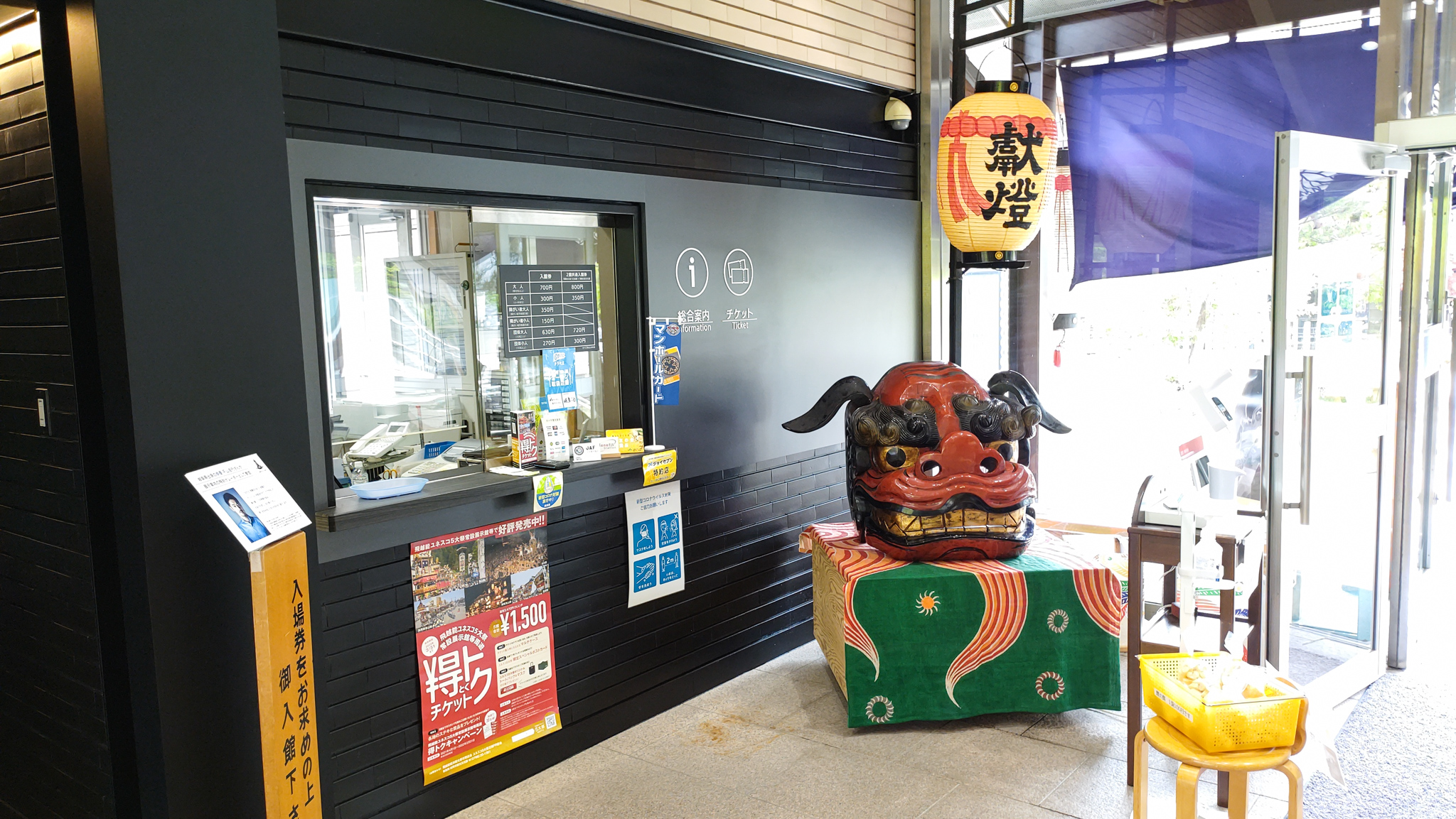 まず館内に入ると、受付で獅子頭がお出迎えしてくれた。ここで入場料700円(飛騨の匠文化館とセットの場合は800円)を支払うと、中に入ることができる。まずは古川祭の説明パネルなどがあり、その廊下を抜け下の階に降りると、スタッフの方が4Kシアターに案内してくれた。4Kシアターでは、毎時20分おきに古川祭の様子を映画館のような大型のスクリーンで楽しめる。映像の綺麗さにはとても驚いて、まるで映画を見ているような気分に浸ることができた。ここでまず映像を見ておくと、展示を見るにも祭りの流れがわかるので、より楽しむことができると感じた。合わせて古川祭の屋台に関する映像資料も展示されており、より理解を深めることができた。