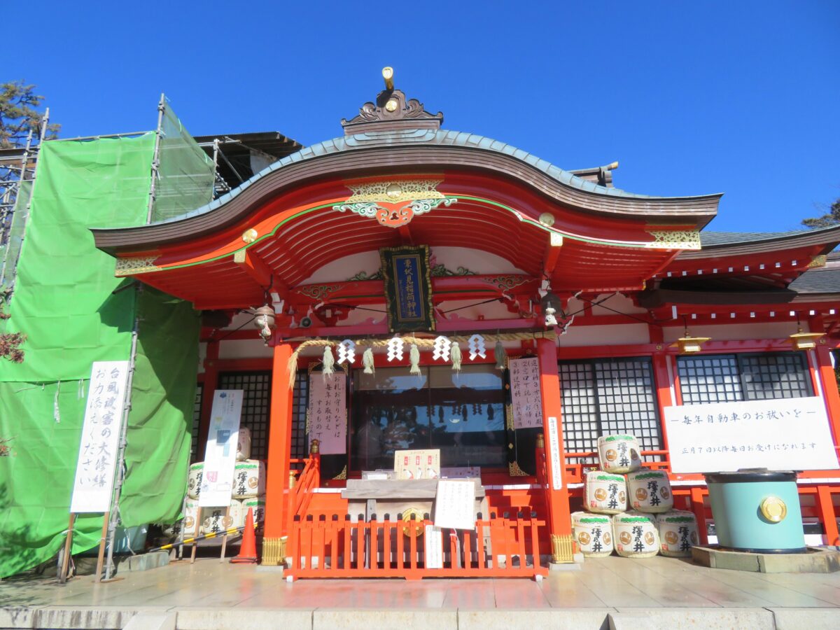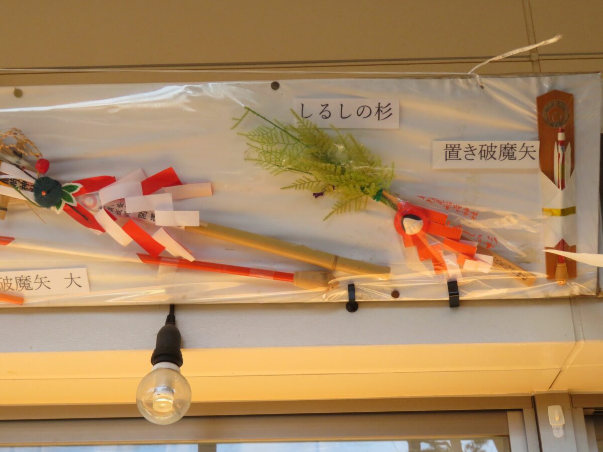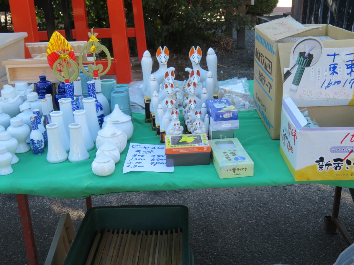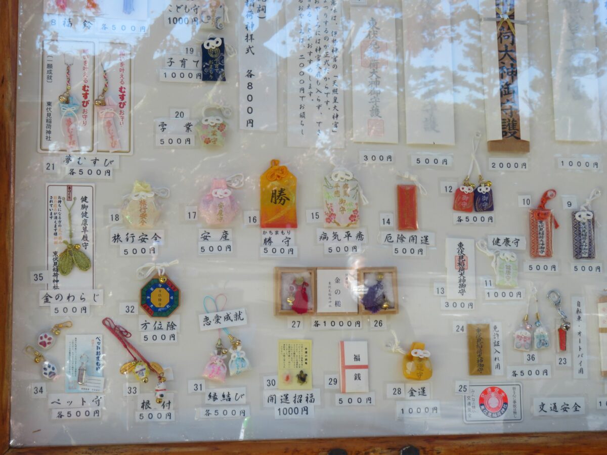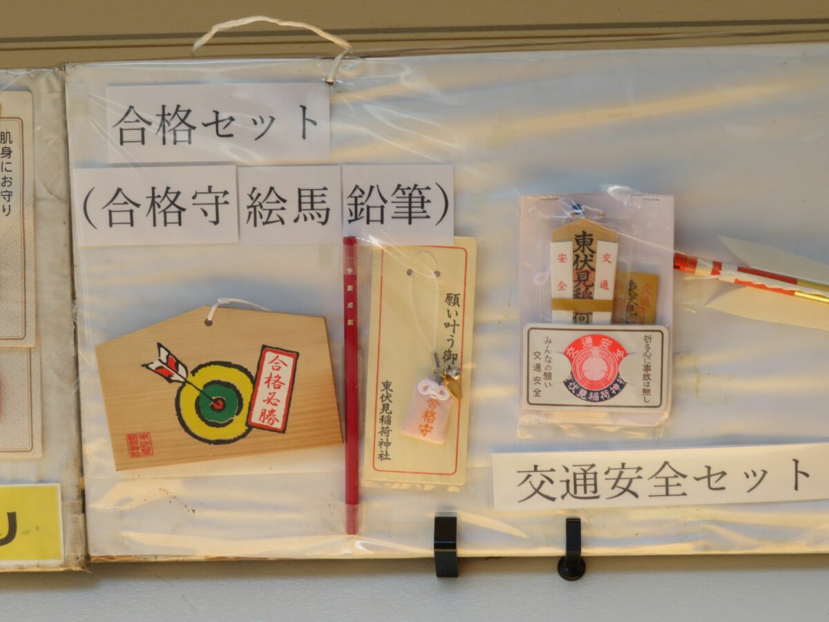拝殿西の祈祷受付では、稲荷山の杉やお多福の面などを組合せた縁起物の「しるしの杉」などの授与を受けることができ、境内には露店も出店されます。