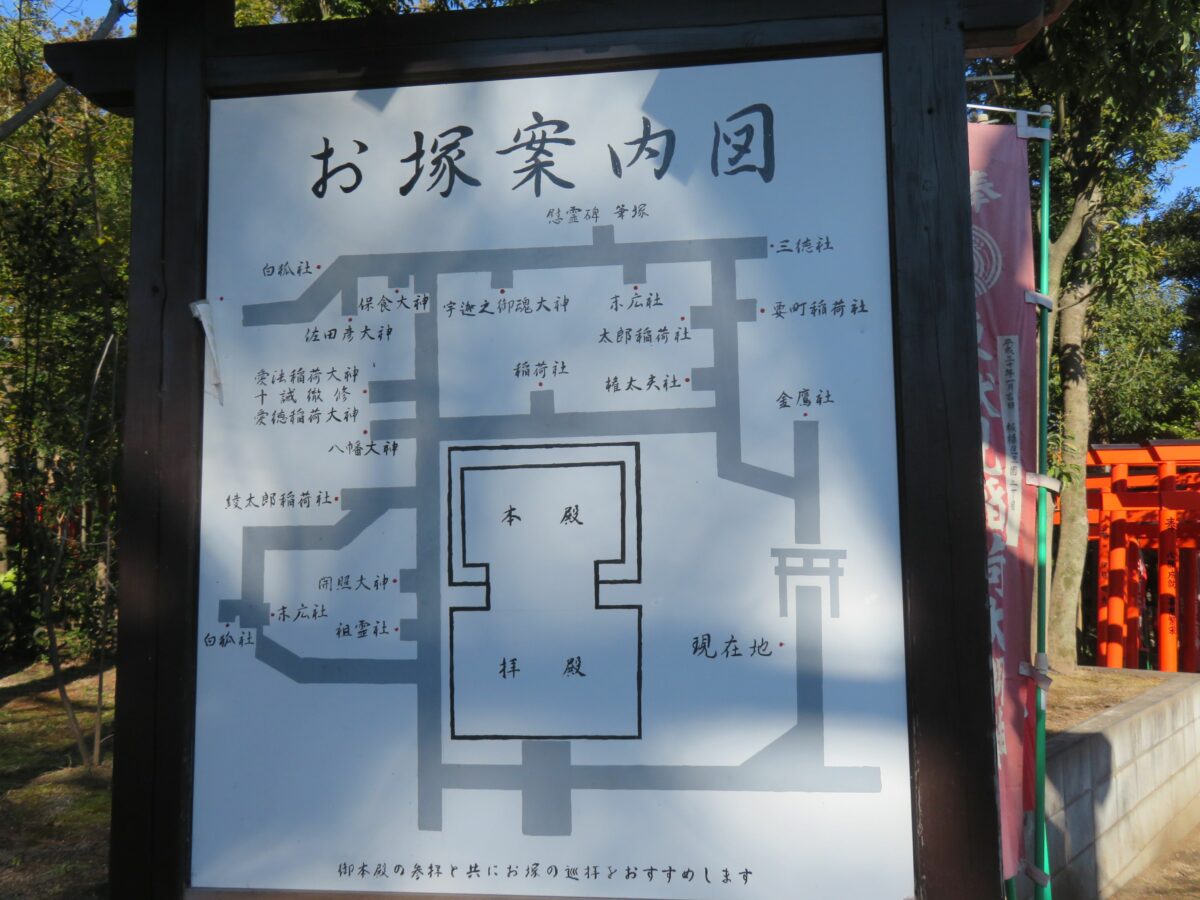 東伏見稲荷神社の境内や授与品には稲荷神社としての特色が満ち溢れていますが、最大の特徴はお塚巡りができることでしょう。拝殿北の広々としたエリアに朱色の鳥居がひしめき合っています。