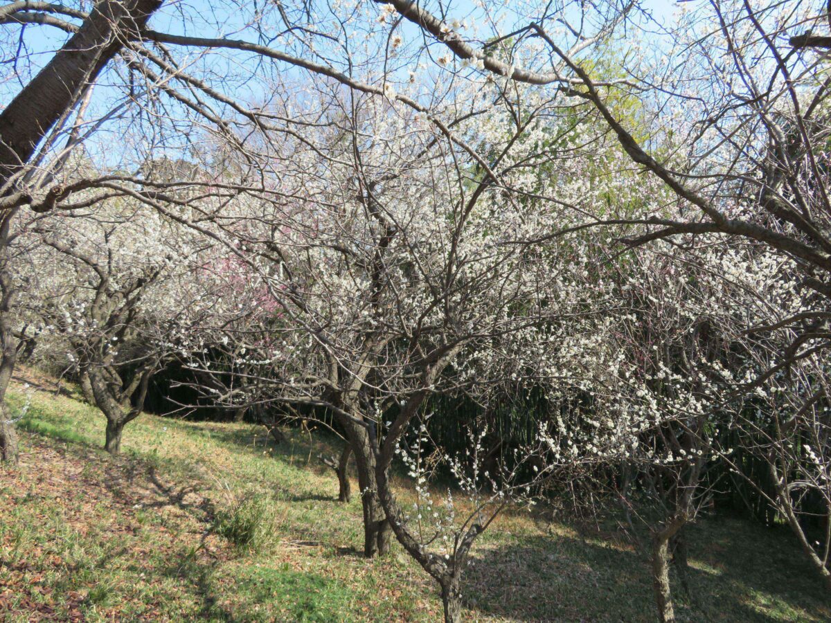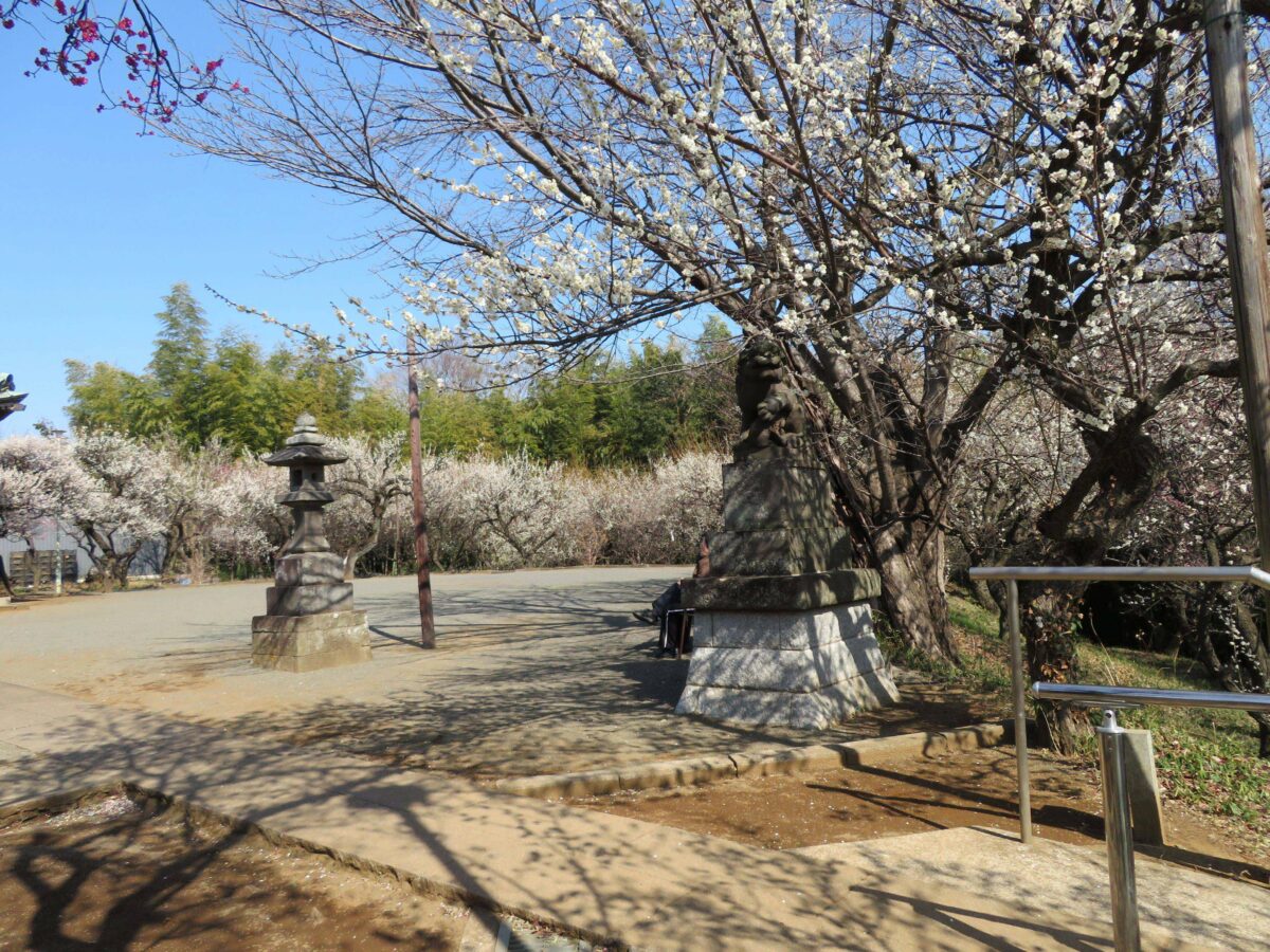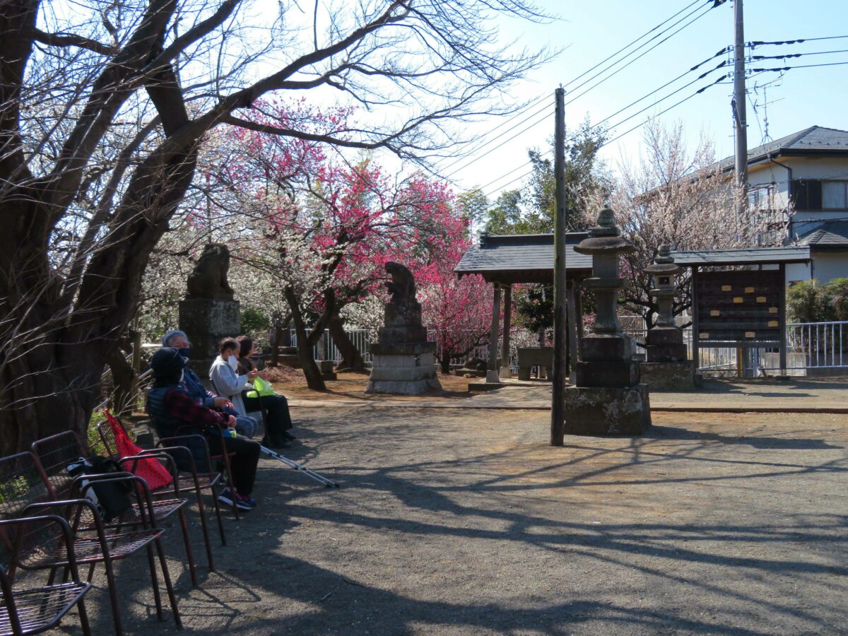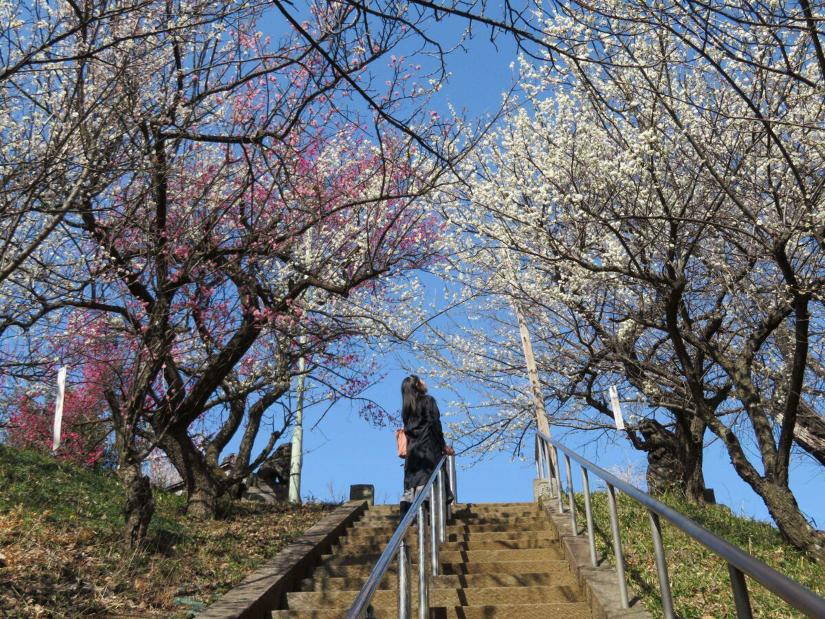 「東方天満宮観梅会」が開催されると、広々とした境内では梅酒や甘酒が振舞われる他、野点、おでんや焼きそばの模擬店、地元都筑野菜の露店が並びますが、2021年は中止となったため境内からパノラマ状に広がる季節の彩りを落ち着いた雰囲気で楽しむことができます。