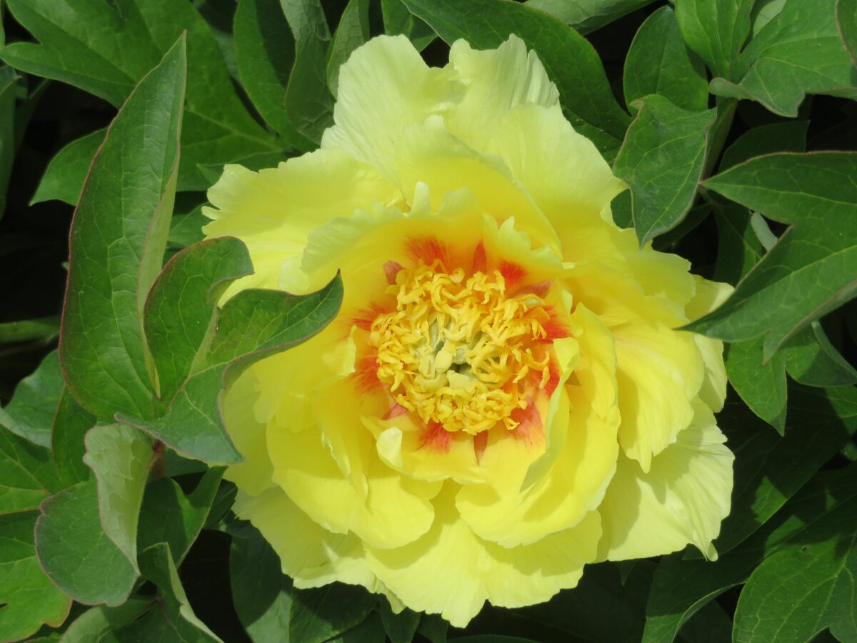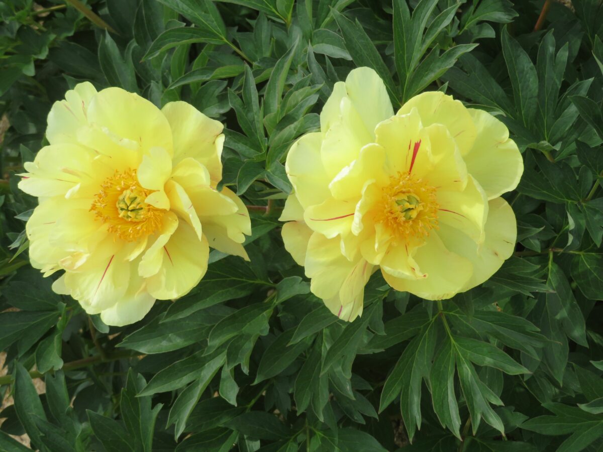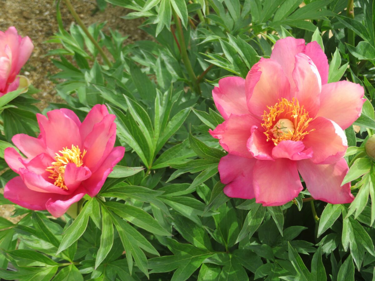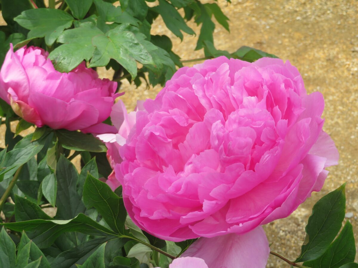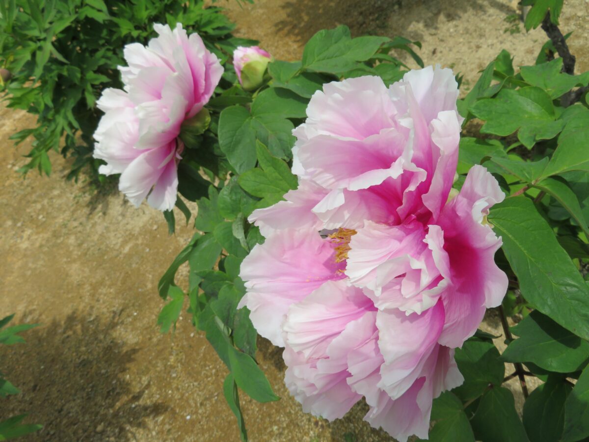 美しい女性の姿を「立てばシャクヤク、座ればぼたん、歩く姿は百合の花」と形容することがあります。3つの花の中でシャクヤクとぼたんは、いずれも透けるような彩りで柔らかな花弁が重なり合い、見分けるのは難しいかもしれません。ところが、シャクヤクは、地面からまっすぐ伸びた茎の先に花を咲かせるため、女性の立ち姿に見えます。一方ぼたんは、低木の幹に着けた新芽の上に花を咲かせる様子が座った姿に見えるようです。埼玉県のほぼ中央に位置する東松山市では、ぼたんを市の花としており、市の北部に東松山ぼたん園が設けられています。例年4月上旬から5月上旬には園内は様々な色彩のぼたんが花を咲かせ、「東松山ぼたん園ぼたんパークフェスタ」が開催されています。2021年は新型コロナウイルス感染防止のため、ステージイベントは中止となりましたが、4月10日~5月5日には、ぼたん苗の販売の他、軽トラ市、ぼたん育て方教室などが実施されました。