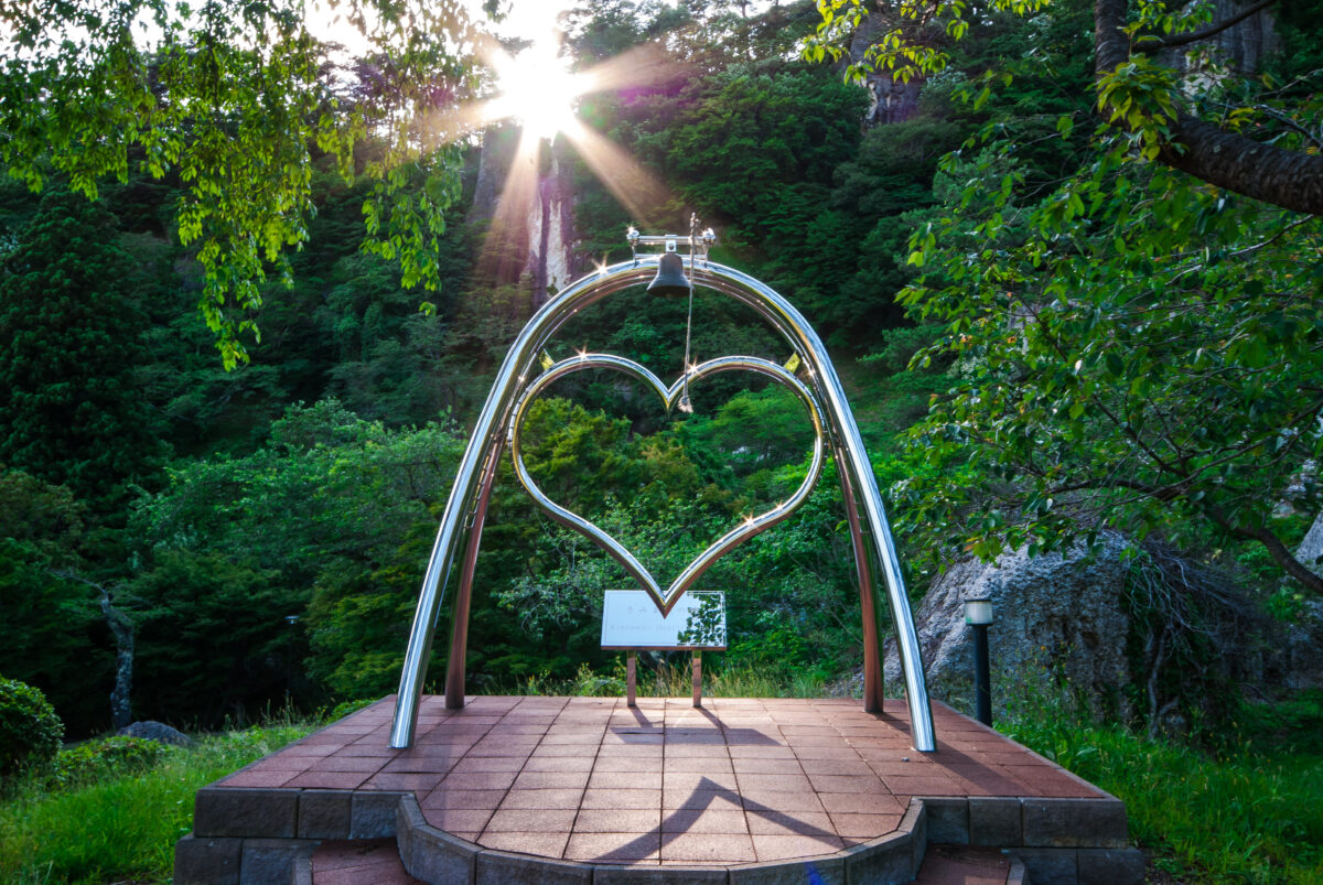 こちらは公園内にある、きみまちの鐘という恋のパワースポットです。ぜひ立ち寄った際には鳴らしてみてください。恋人と一緒に鳴らすと未来永劫幸せになれるとか…