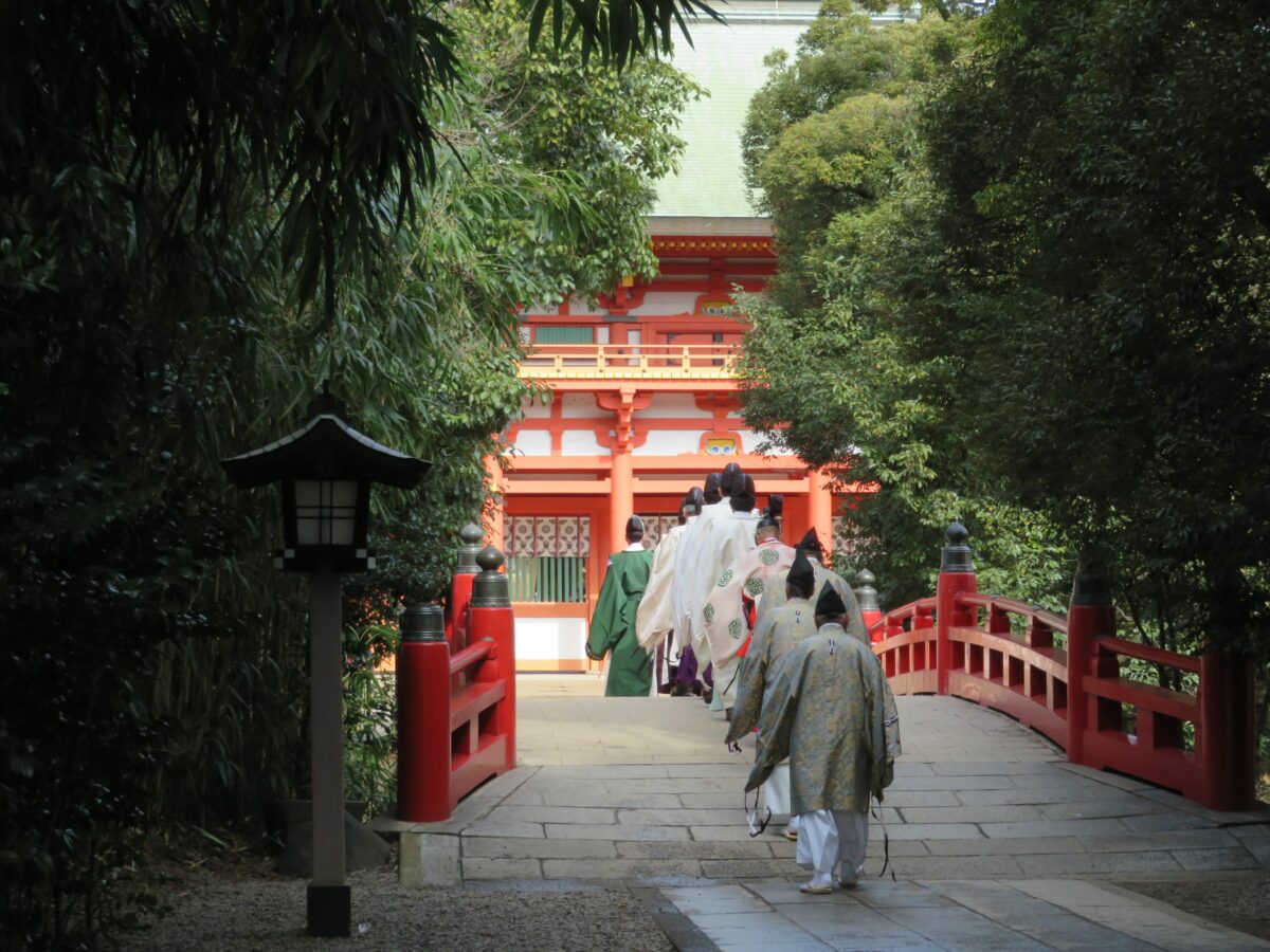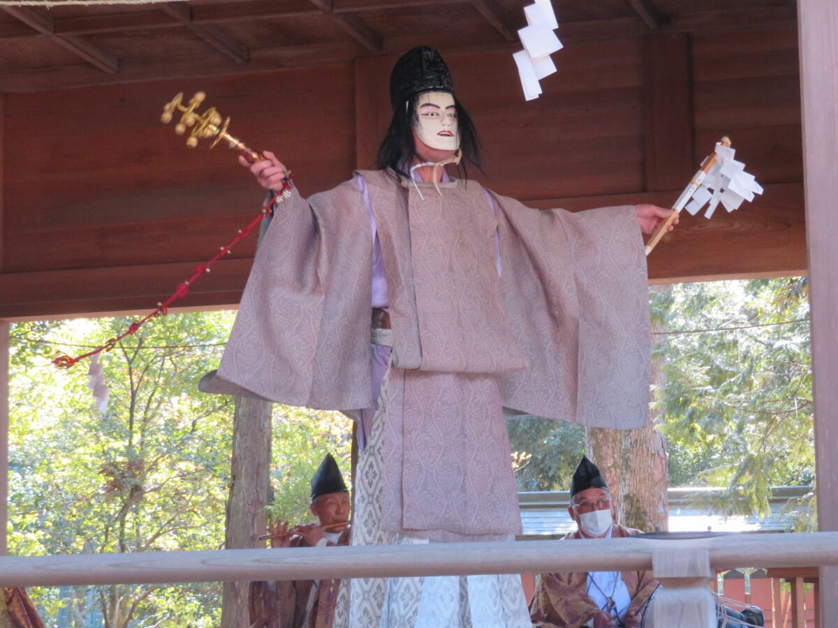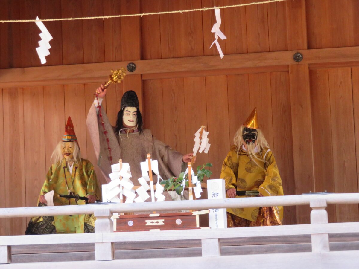 さいたま市大宮区の氷川神社では、例年3月15日に「郷神楽祭」が開催されています。2022年には、舞殿で「鈴神楽」の奉納が行われた後、神楽殿で「巫女舞」、「住吉三神」、「八岐大蛇」などの神楽の舞いが演じられました。