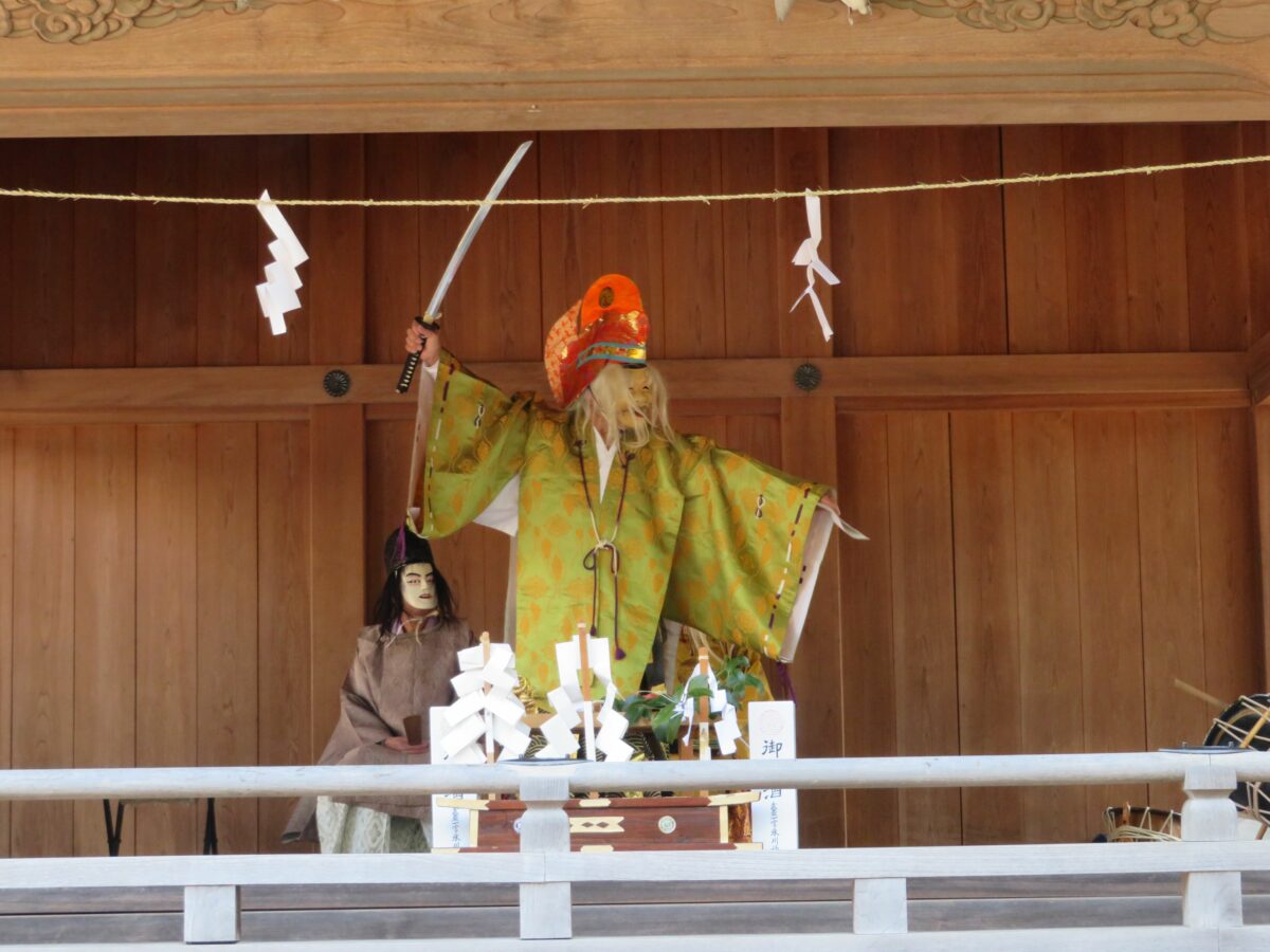 神楽殿で「八岐大蛇」を退治する主祭神「須佐之男命」