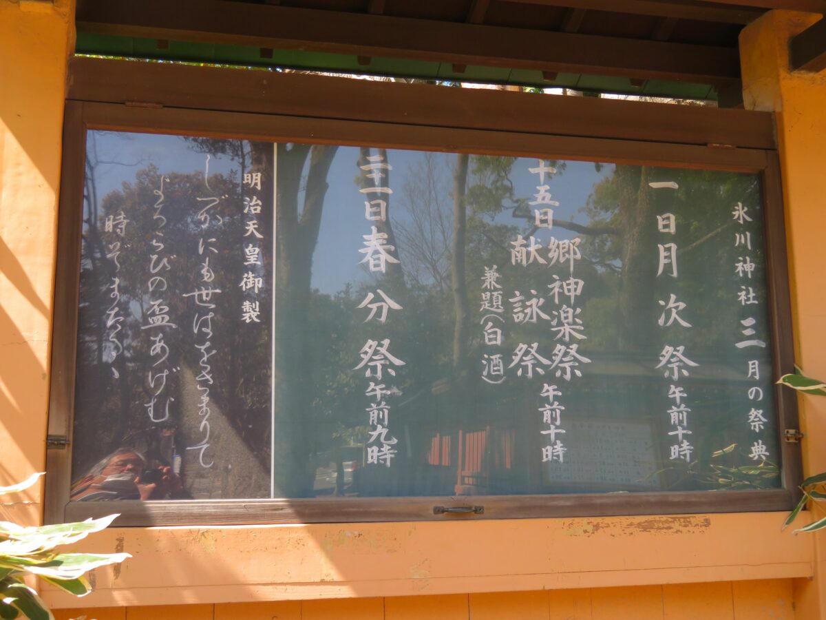 氷川神社では古くから神楽の奉奏が盛んに行われてきました。江戸時代の1789年には、徳川幕府の命を受け、五穀豊穣を祈り神前で神楽の奉納を行いました。19世紀の文政年間には、社頭で永代太々神楽の舞いを行い、8000人ほどの人々が見守ったという記録もあります。神楽殿の北に隣接する額殿には、神楽の奉納を記した額が数多く残されています。