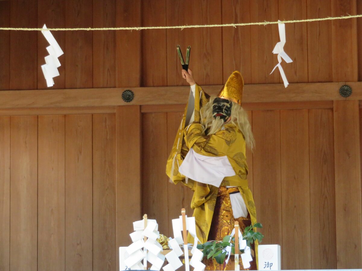 黒尉の面をつけた「底筒之男命」の「波の舞」