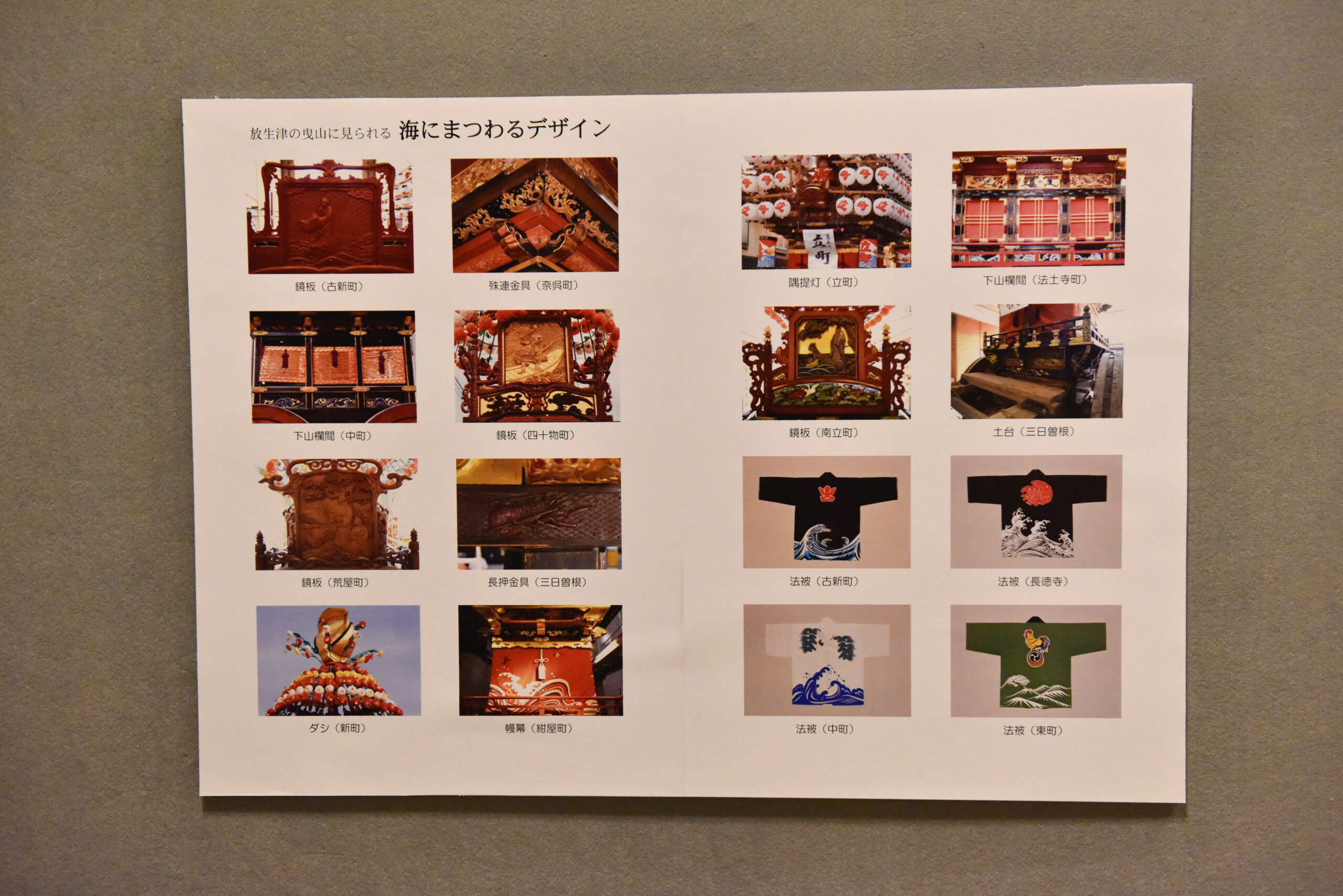例えば、新湊曳山まつりには「海にまつわるデザイン」が散りばめられているという紹介があった。法被には海の波のモチーフが使われているし、曳山に取り付けられた鏡板にも海が描かれている。海と暮らしが密接に結びついた地域であり、そこに祭りと信仰が息づいていることが窺える。