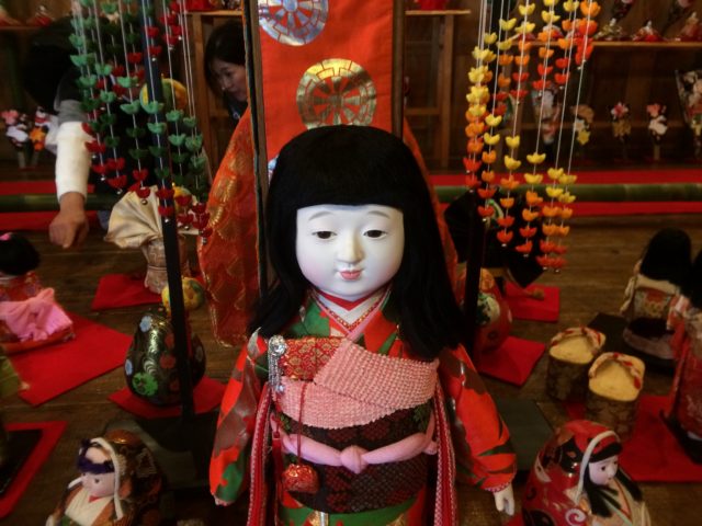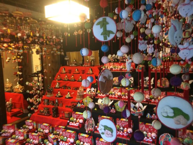 奥の土蔵では高さ2.4mの「大つるし雛」も展示。