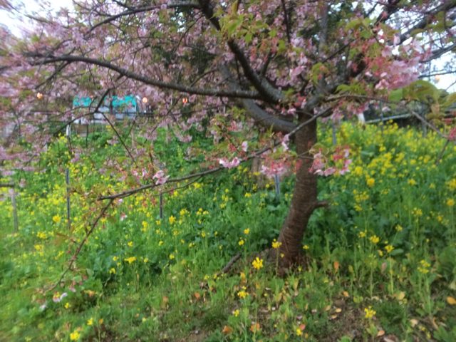 この町にある松田山では、約360本の早咲きの河津桜と菜の花が、