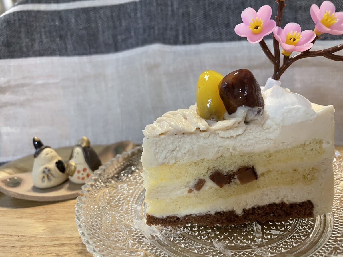 マロン尽くしのマロン好きにはたまらないケーキ。上部には甘露煮までトッピングされたており、スポンジはふわふわで濃厚な味わいでした。