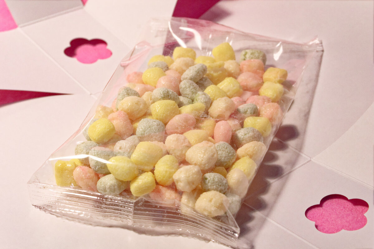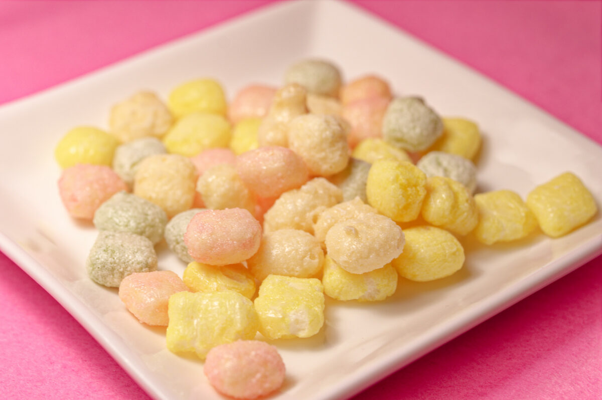 実食していみると、想像していた「ひなあられ」ではなく通常の「あられ」に近い食感。お味の方は色によって異なり、黄色・ピンク・緑がふんわりとした甘味のあるあられ。白が濃厚なミルキー味のあられ。ここ十年以上ミルキーは食べていないので非常に懐かしい味わい。口いっぱいに広がるミルキーの風味がやみつきになります。皆様も黄色・ピンク・緑・白と味比べしてみませんか。