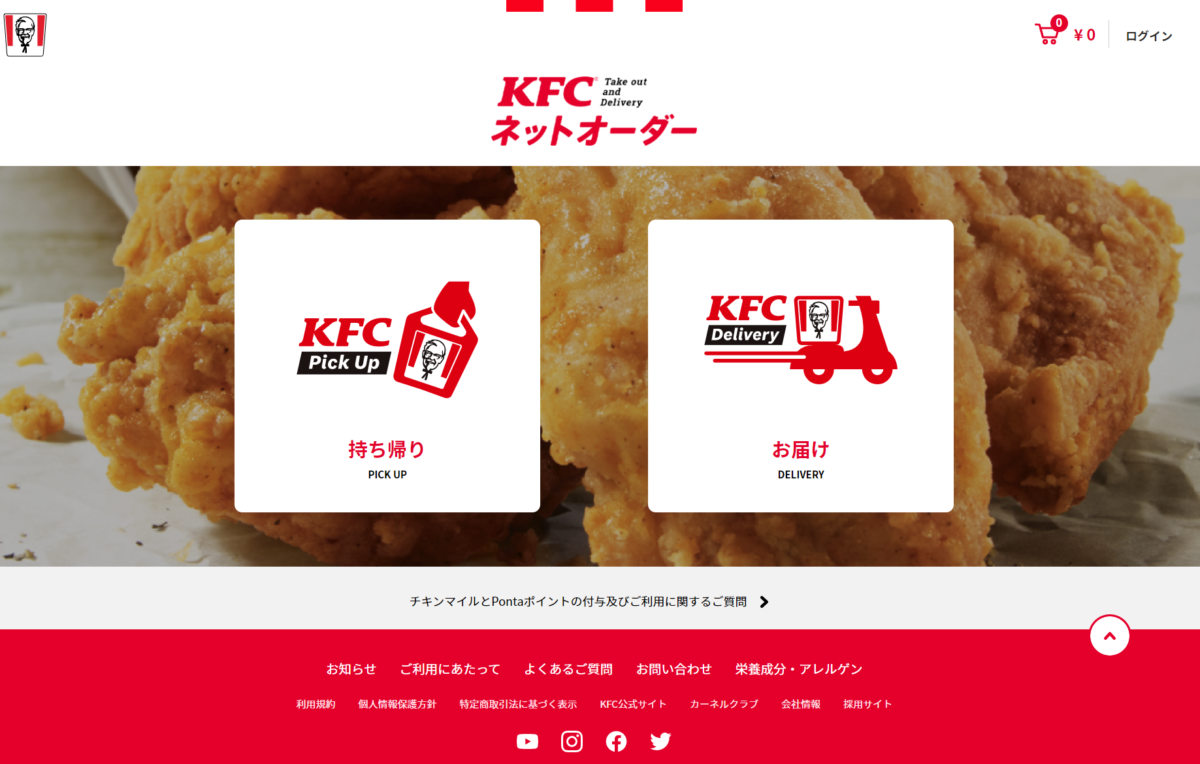 ケンタッキーフライドチキン公式サイト ネットオーダー画面
