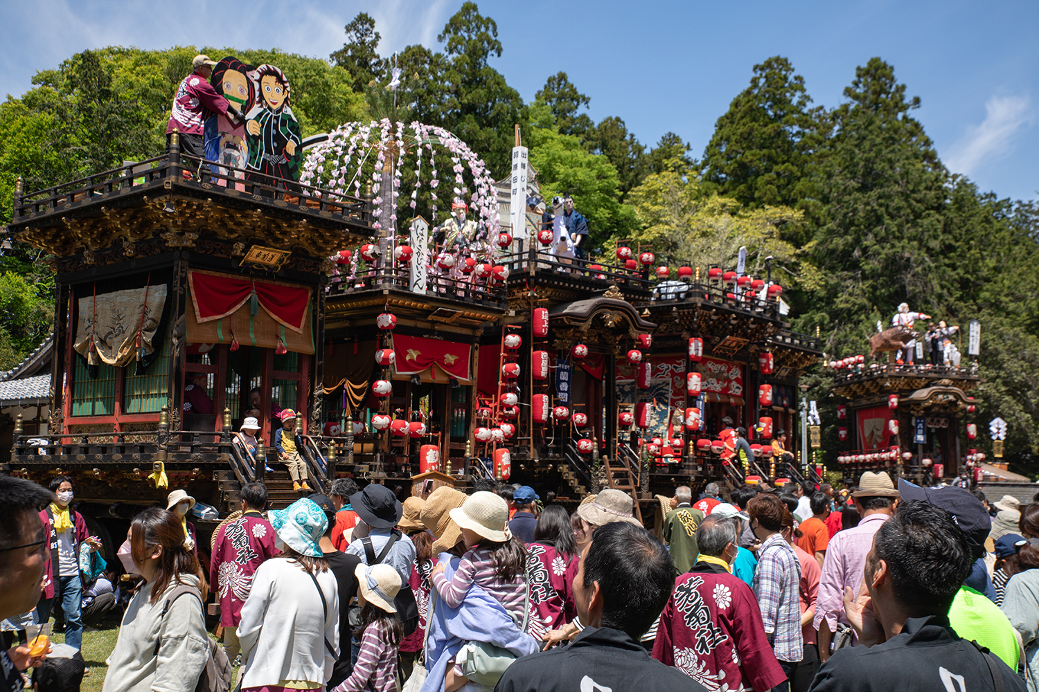 他には浦島太郎や花咲か爺さん、鬼滅の刃と物語の主人公たちが飾られていました。このあと御神輿3基も町内に繰り出します。