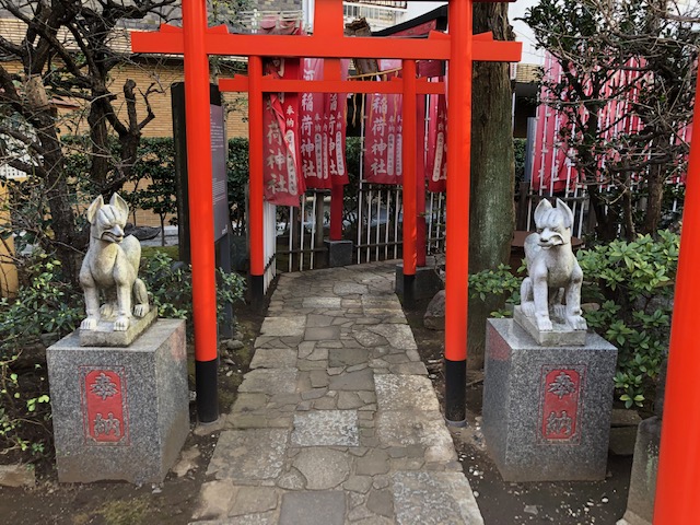左側には地元で古くから信仰を集めていた平河稲荷もあり、こちらには、力比べをされた力石や筆塚もあります。