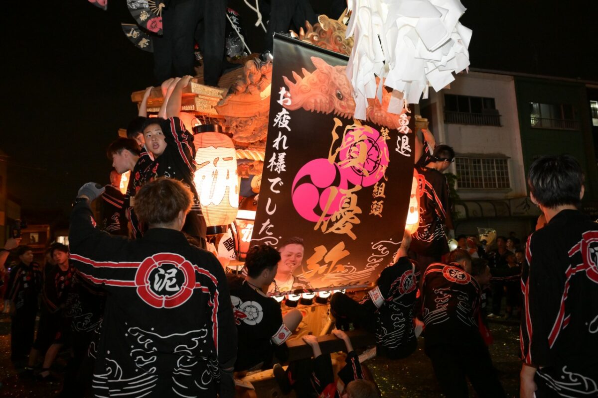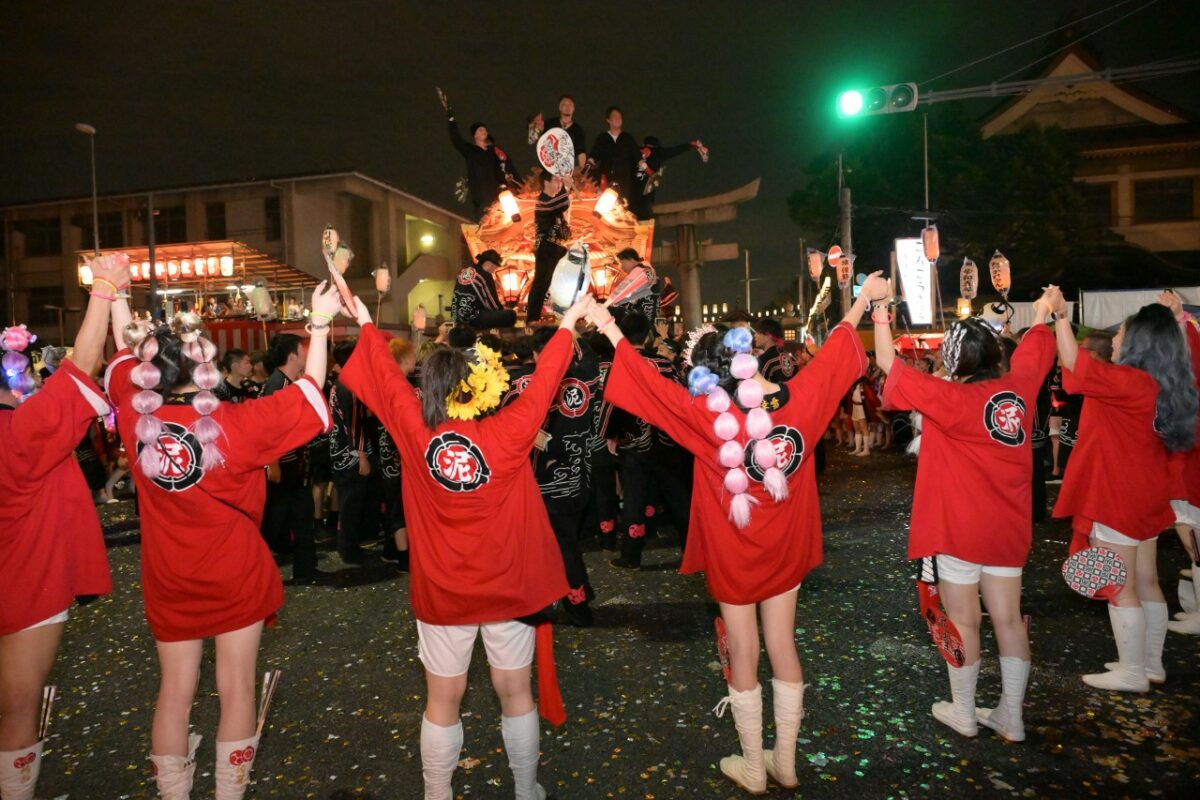 だんじりを回転させる「まいまい」の時に、泥姫と呼ばれる若い女性たちがだんじりを囲むように輪になって手を繋ぎ、「まーいまい」と可愛い掛け声をだしながら手をあげさげしていました。