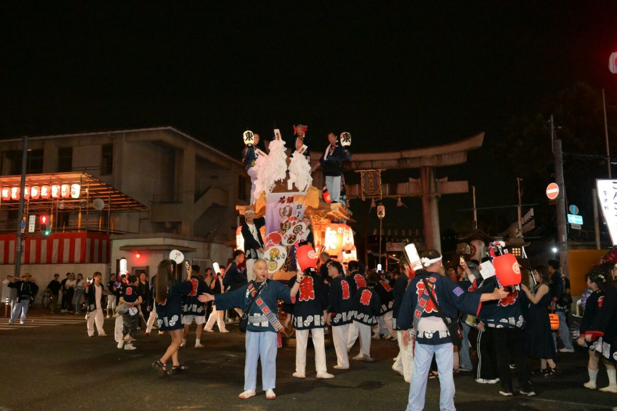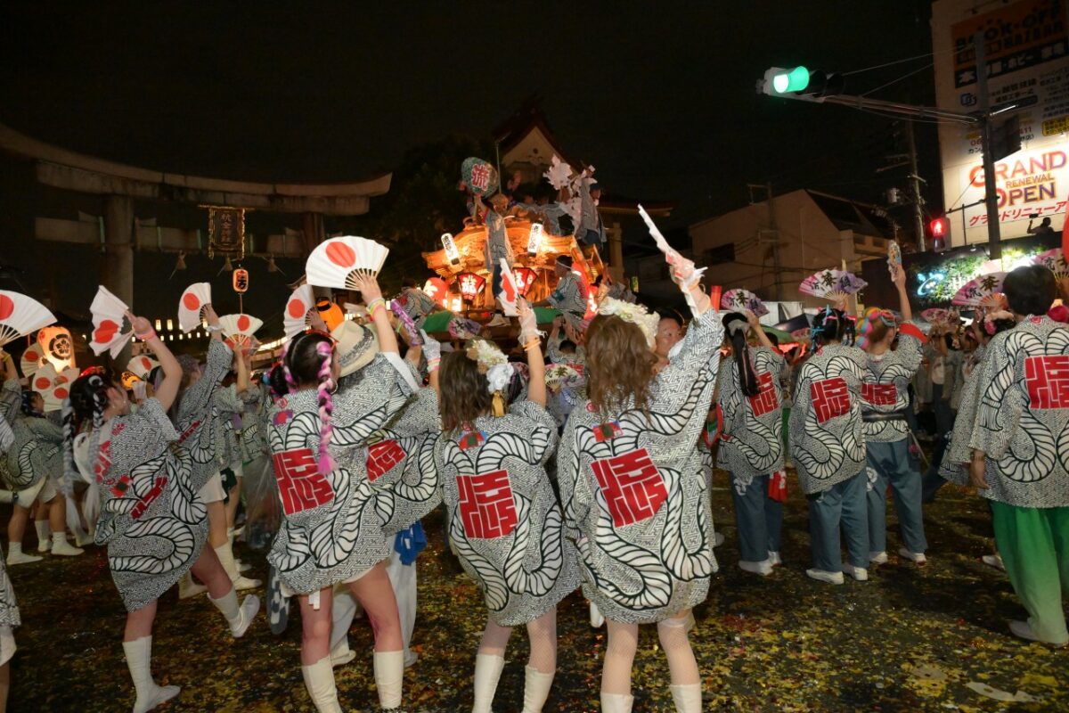 令和5年7月11日~14日、大阪市南部にある平野区の杭全(くまた)神社の夏祭りが盛大に行われました。今回の記事は13日の夕方から行われた宮入の様子をお伝えします。宮入の順番は前年の最後に宮入をした町が1番となり、以降の順番が1つずつ繰り下がります。
