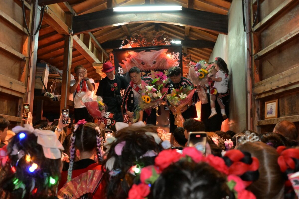 宮入終了後の休憩時間に各町から参加している祭華さんの集合写真を撮らせていただきました。