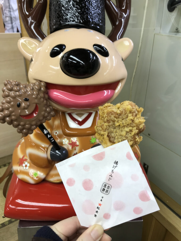 ここ最近、テレビなどでも取り上げられることが多いのが、もみじまんじゅうを天ぷらにした、宮島・紅葉堂の「揚げもみじ」!広島駅でも最近店舗が出来ましたが、宮島が本店です!