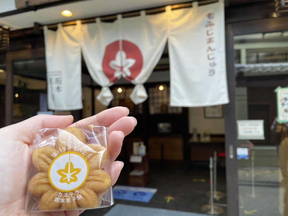 ご紹介するのは、宮島の商店街から路地を入ったところにある「坂本菓子舗」さん。自家製小豆の皮むきさらしあんは、北海道産の小豆の皮をきれいに取り除き丁寧にあく抜きしたもの。100年の歴史を持つあんとのことです。ふわふわの生地と上品な甘さのあんこが絶妙なバランスで大変オススメ。しかし、「坂本菓子舗」さんには、まだまだ、オススメのもみじまんじゅうがあります。