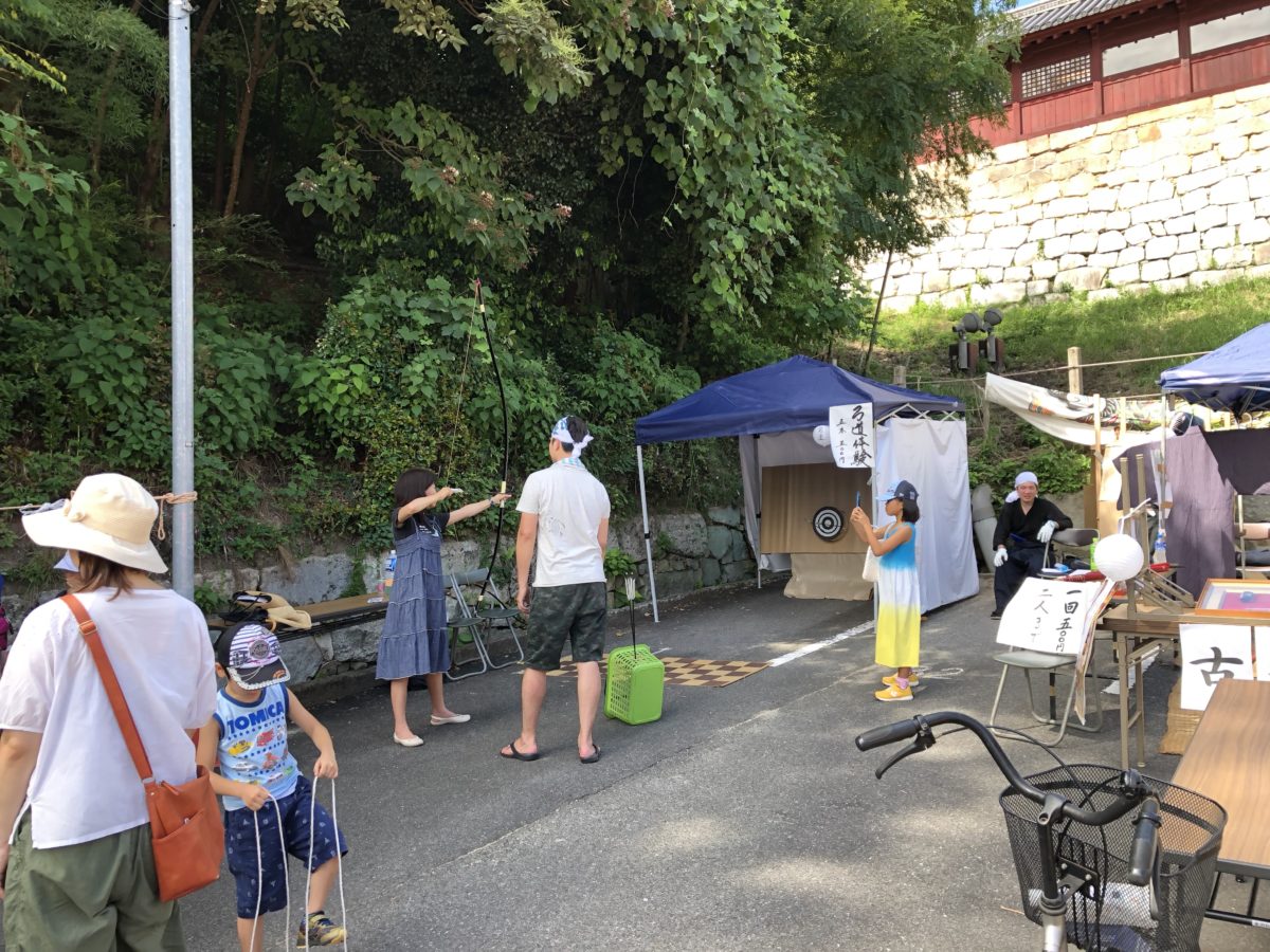 行列がほぼ絶えなかったという弓道体験。まっすぐ腕を伸ばして弦を放せばいいだけですが、弦の反動もあり体幹が鍛えられていないと思うようなコントロールが難しい。通常よりも的までの距離は近いため比較的当たりやすく、当たるとスカッとするし外れると悔しい。そんな白黒ハッキリする体験が人気のようでした。