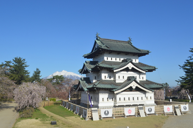 江戸時代からの現存天守12箇所のうち東日本唯一の弘前城。天正18年(1590)、津軽地方の統一を成し遂げた大浦為信(後の津軽為信)が、豊臣秀吉から4万5千石の領地を獲得。後に関ヶ原合戦で東軍につき、徳川家康より加増を受け4万7千石の弘前藩が成立しました。