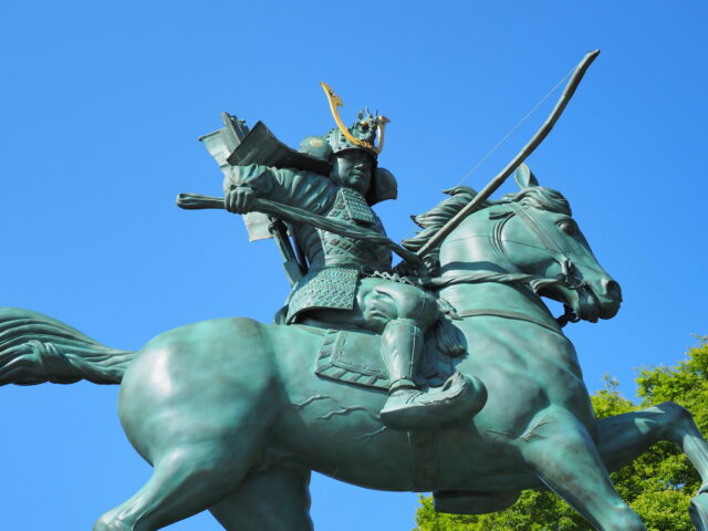 木曽義仲の騎馬像 写真提供=富山県小矢部市観光協会