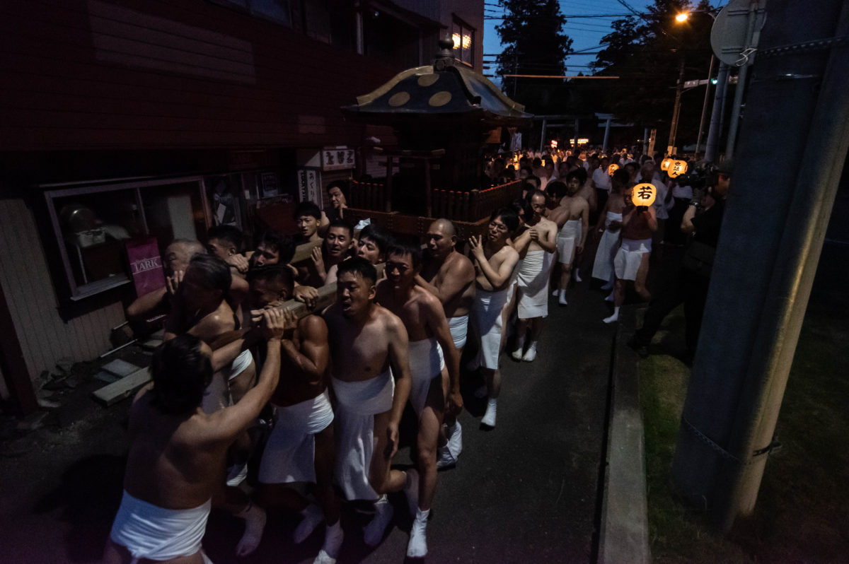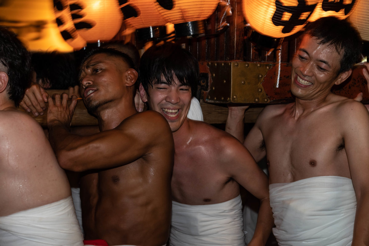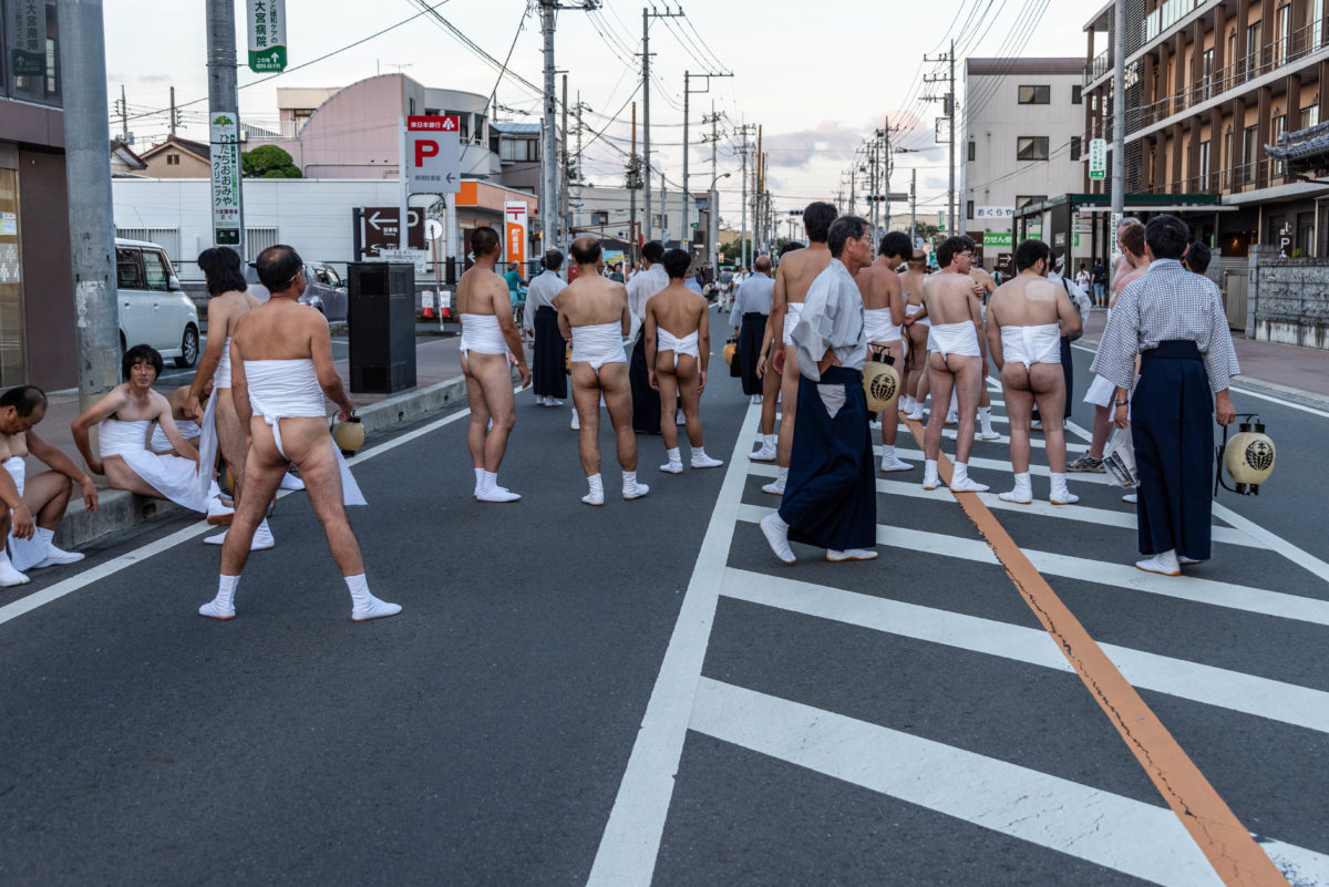 夕方6時過ぎ、通りにはキリリと褌を締め上げた男衆たちが集まってきます。