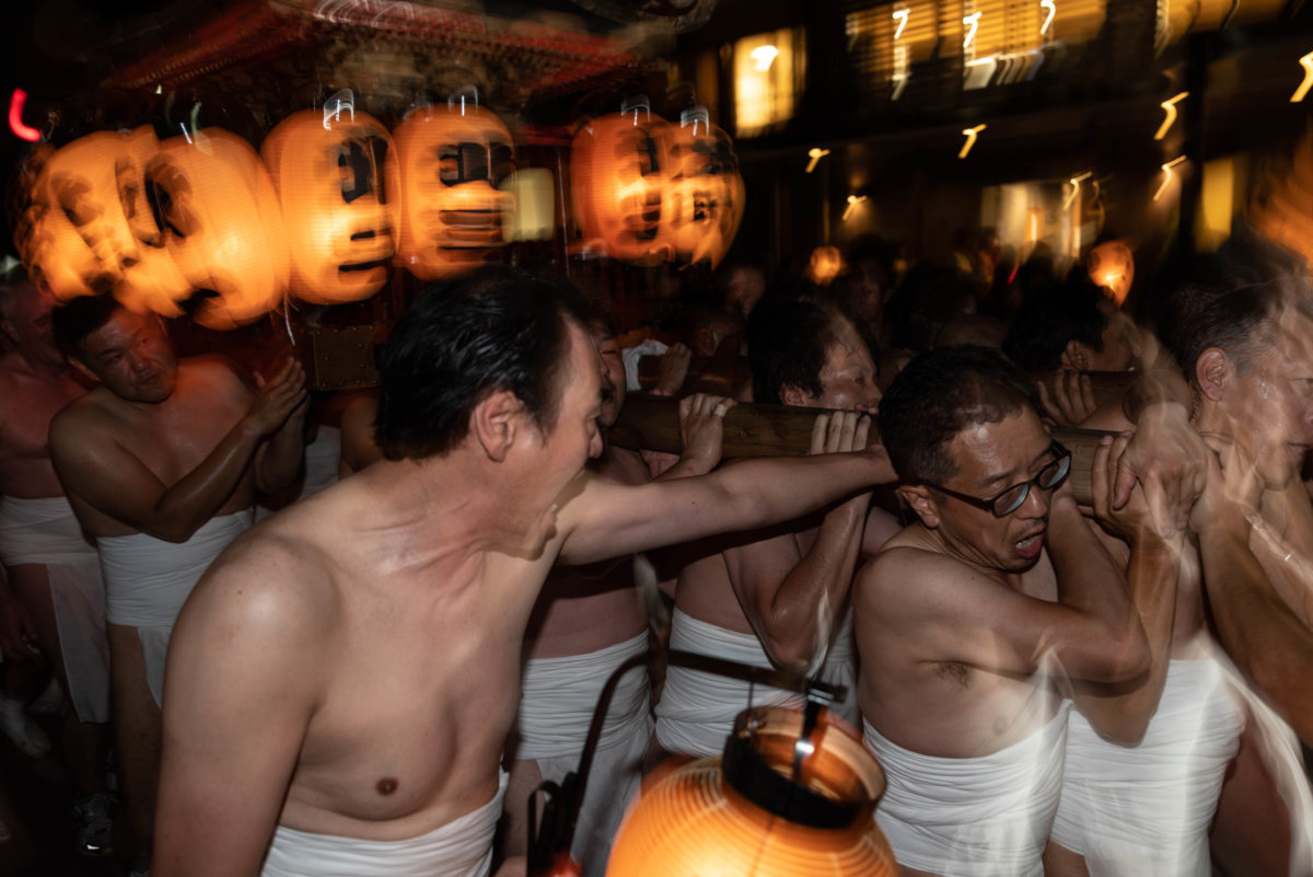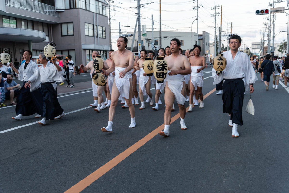 少し涼しくなった夜でも、男衆達の背中は汗でびっしょり!