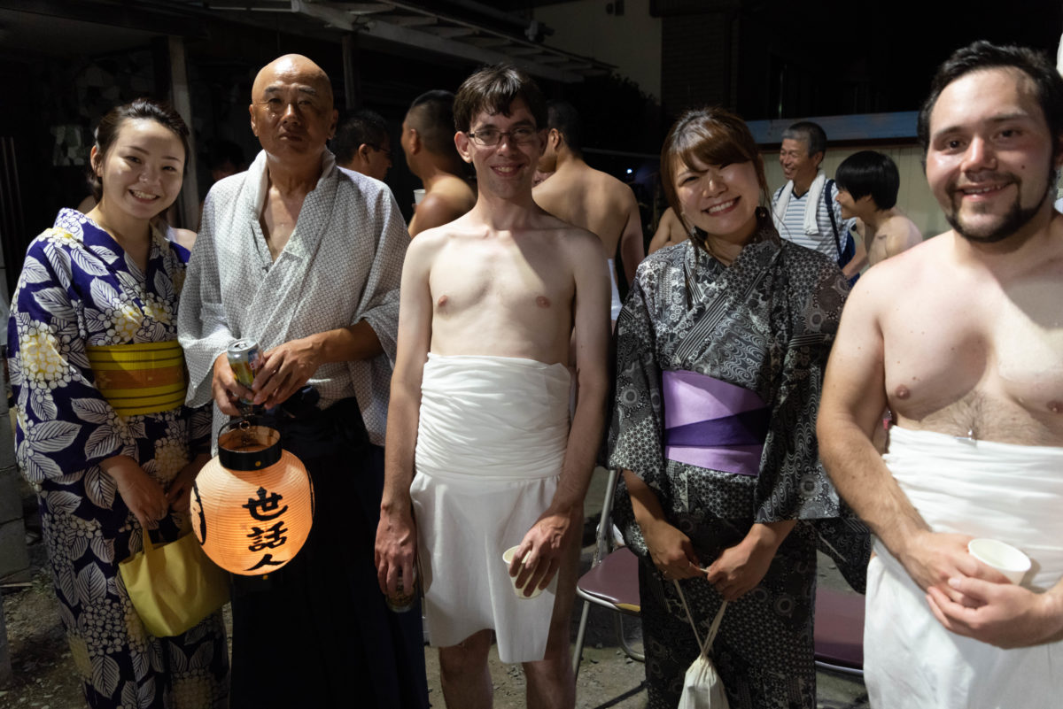 褌姿の男たちの中で浴衣姿の二人はかなり目立ちまくりです!お神輿初体験の外国人の方々や地元の方々との会話も弾み、褌姿にドキドキ?しながらも最高に楽しい時間を過ごしたようです♪