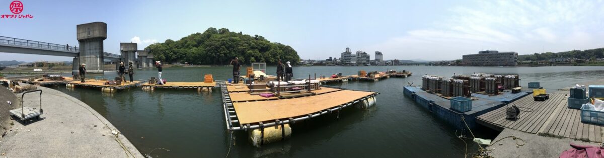木塚社長:この台船は、川の中央に置くと全長が66mに広がって、9ヶ所の星打ちと、3か所から打上花火が上るようになります。