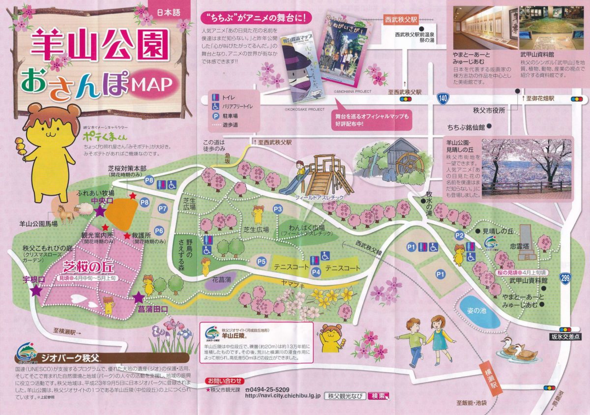 羊山公園の魅力は芝桜の丘に留まりません。山一つを公園の敷地として数多くの施設を備えています。