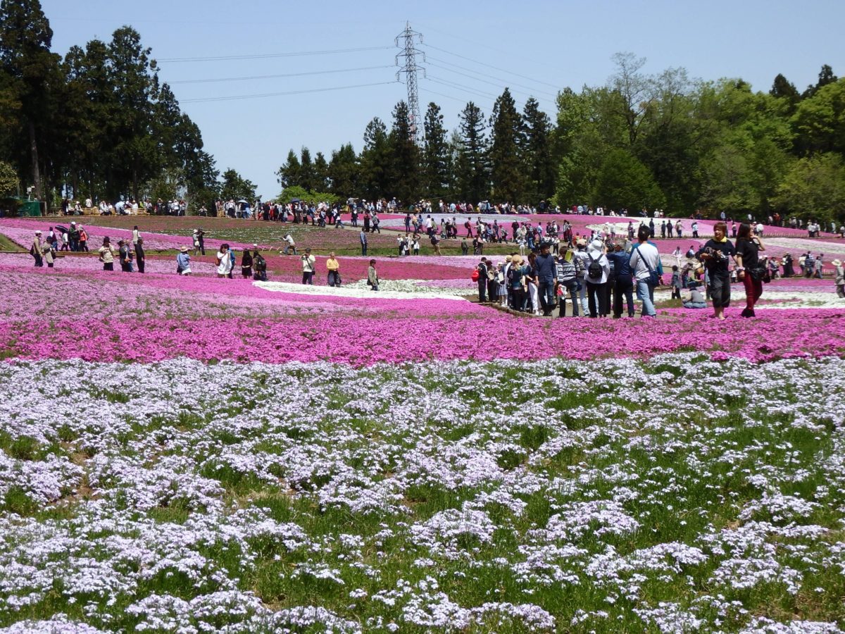例年4月中旬から5月上旬には地面は芝桜の花で埋め尽くされ、まるでピンクと白に染められた絨毯の上を歩いているようです。足元からポカポカとした暖かさが体の中に浸み込んでくるようで、春の訪れを全身で感じることができます。