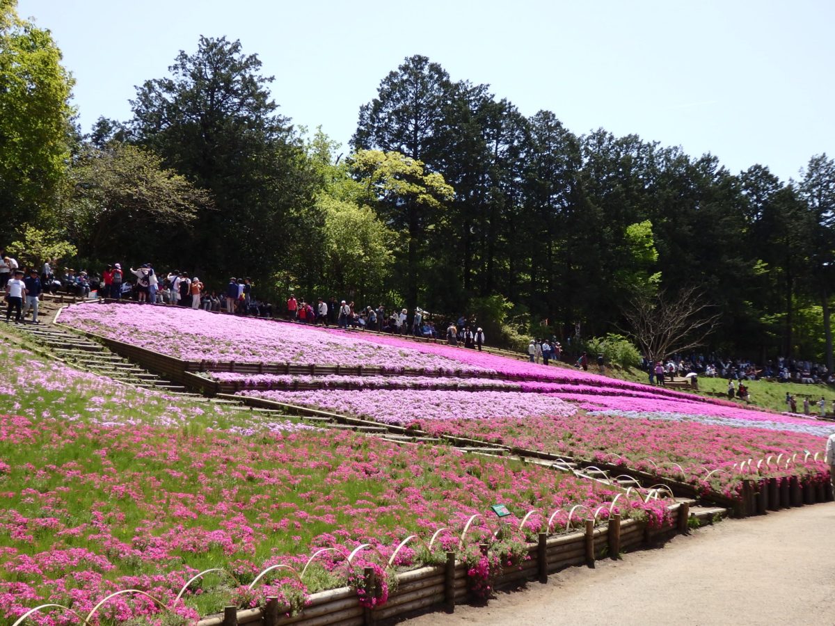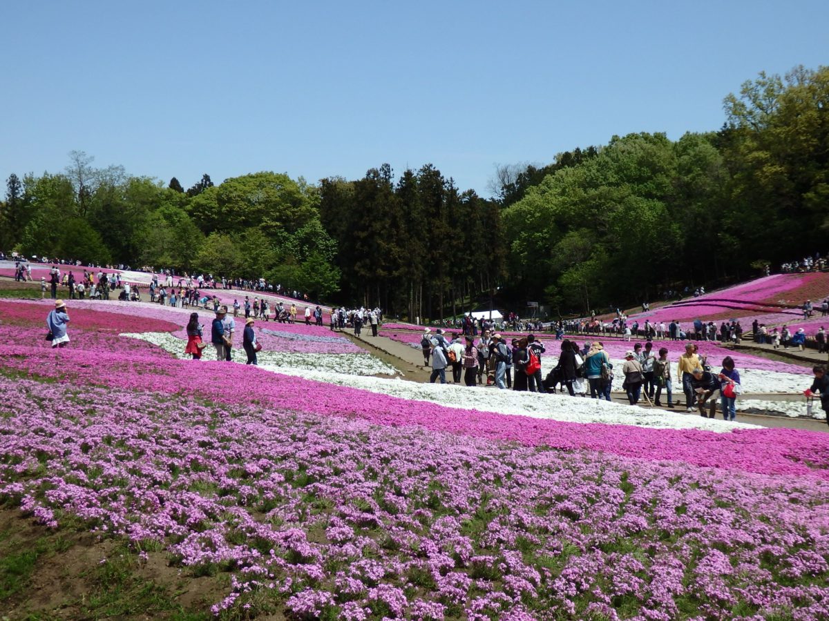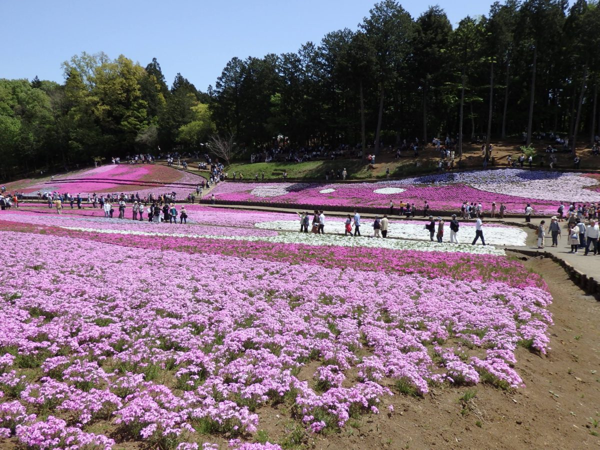 埼玉県秩父市の羊山公園にある芝桜の丘は、例年4月中旬から5月上旬にかけて、一面がピンクと白の絨毯が敷きつめられたようになります。芝桜の開花にあわせて毎年「芝桜まつり」が開催され、2019年には4月12日~5月6日に行われました。